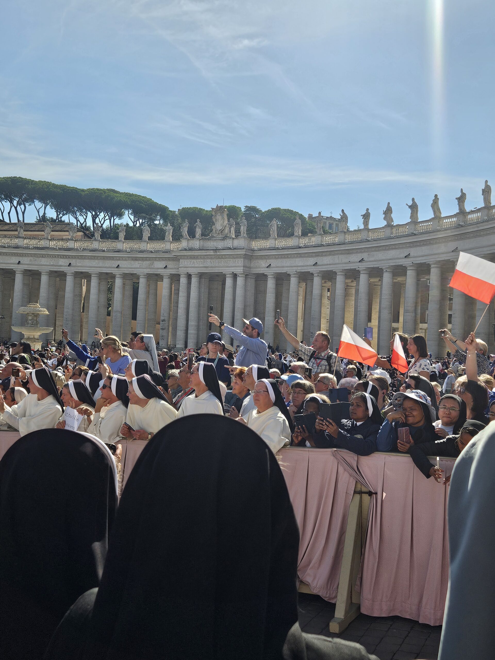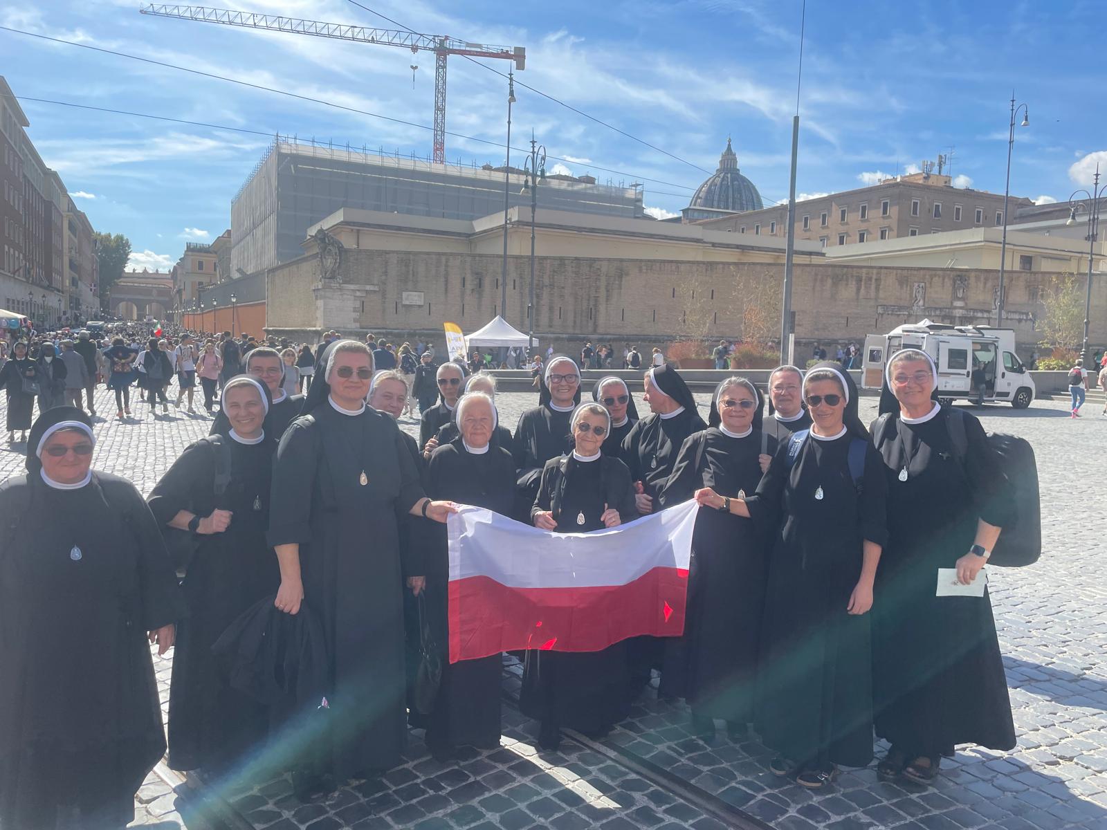 W czwartek, 9 października br., na Placu św. Piotra w Watykanie odbyła się uroczysta Msza Święta z okazji Jubileuszu Życia Konsekrowanego, której przewodniczył Ojciec Święty Leon XIV. W wydarzeniu uczestniczyły tysiące osób konsekrowanych z całego świata – zakonnice i zakonnicy, mnisi, pustelnicy, członkowie instytutów świeckich oraz Ordo virginum. Wśród zgromadzonych obecne były również nasze Siostry z Polski i Włoch, które wraz z innymi wspólnotami dziękowały Bogu za dar powołania i łaskę służby Kościołowi. Plac św. Piotra wypełnił się śpiewem i wdzięcznością osób, które całym swoim życiem pragną ukazywać światu piękno Bożej miłości. W swojej homilii Ojciec Święty rozpoczął rozważanie od słów Ewangelii według św. Łukasza: „Proście, a będzie wam dane; szukajcie, a znajdziecie; kołaczcie, a zostanie wam otworzone” (Łk 11, 9). Nawiązując do tych słów, papież Leon XIV przypomniał, że są one szczególnie bliskie osobom konsekrowanym, przyzwyczajonym do życia w duchu rad ewangelicznych i codziennego zawierzania się Bogu: „Prosić oznacza uznać w ubóstwie, że wszystko jest darem Pana i za wszystko trzeba dziękować; szukać oznacza otworzyć się w posłuszeństwie, aby każdego dnia odkrywać drogę, którą należy podążać na drodze świętości; kołatać oznacza prosić i ofiarować braciom otrzymane dary z czystym sercem, starając się kochać wszystkich z szacunkiem i bezinteresownie”. Ojciec Święty wskazał również na konieczność pamięci o początku drogi powołania: „Wszyscy jesteśmy tutaj przede wszystkim dlatego, że On nas zechciał i wybrał, od zawsze”. Życie konsekrowane – mówił papież – to nieustanne powracanie do źródeł miłości Boga, który pierwszy nas umiłował. Nawet w chwilach cierpienia i niezrozumienia, Bóg pozostaje Ojcem, który prowadzi i oczyszcza serce człowieka, aby jego życie mogło przynosić owoce dla dobra Kościoła. Druga część homilii była głęboką refleksją nad centralnym miejscem Boga w życiu każdego człowieka, a szczególnie osoby konsekrowanej. „Dla was, dla nas, Pan jest wszystkim. Bez Niego nic nie istnieje, nic nie ma sensu, nic nie ma wartości.” Ojciec Święty nawiązał do słów św. Augustyna, który w swoich Wyznaniach opisywał duchowe doświadczenie spotkania z Bogiem: „To właśnie kocham, kiedy kocham mojego Boga.” Papież Leon XIV podkreślił, że to doświadczenie jest bliskie każdemu człowiekowi, który w sercu nosi pragnienie nieskończoności. Dlatego osoby konsekrowane mają szczególną misję – przypominać światu, że prawdziwe szczęście rodzi się z przyjaźni z Bogiem i z całkowitego oddania Jemu. „Kościół powierza wam zadanie, abyście – ogałacając się ze wszystkiego – byli żywymi świadkami prymatu Boga w waszym życiu, pomagając braciom i siostrom w pielęgnowaniu tej przyjaźni”. Odwołując się do proroctwa Malachiasza, Ojciec Święty przypomniał, że życie konsekrowane jest również znakiem nadziei: „Wzejdzie słońce sprawiedliwości i uzdrowienie w jego skrzydłach” (Ml 3, 20). Ta obietnica – mówił papież – zachęca do patrzenia w przyszłość z ufnością i do nieustannego otwierania się na wieczność: „Jest to zaproszenie, abyście rozszerzyli proszenie, szukanie i kołatanie modlitwy i życia na horyzont wieczności, który wykracza poza realia tego świata (…). Osoby konsekrowane są w szczególny sposób powołane do bycia świadkami dóbr niebieskich”. Na zakończenie Eucharystii Ojciec Święty udzielił wszystkim obecnym apostolskiego błogosławieństwa. Plac św. Piotra wypełnił się śpiewem „Salve Regina”, w którym zabrzmiała wdzięczność za dar życia konsekrowanego i za Kościół, który przez osoby konsekrowane ukazuje światu miłość Boga. Miałyśmy też możliwość pozdrowienia Ojca Świętego z bliska, podczas przejazdu papamobile wśród pielgrzymów. Niech słowa Ojca Świętego towarzyszą nam w codziennym „proszeniu, szukaniu i kołataniu” – w nieustannej modlitwie, ufności i otwartości na Boże działanie.