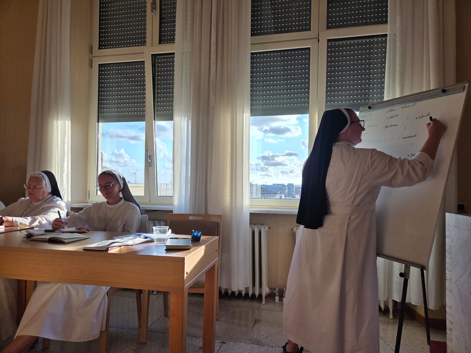 Dobiegło końca tegoroczne polskojęzyczne Seminarium Odnowy w Rzymie. W wydarzeniu wzięło udział 17 Sióstr z Polski, Ukrainy i Czech, które przez sześć tygodni tworzyły wspólnotę modlitwy, refleksji i duchowej odnowy w sercu Kościoła. Był to intensywny i bogaty czas. Uczestniczki brały udział w rekolekcjach zakonnych, wykładach z różnych obszarów teologii i duchowości Zgromadzenia, co stanowiło okazję do głębszej refleksji nad osobistą drogą powołania oraz do oceny relacji z Bogiem. Każdy dzień był zanurzony w modlitwie, słuchaniu Słowa Bożego i wzajemnym dzieleniu się doświadczeniem wiary. Szczególnymi momentami Seminarium były: przejście przez Drzwi Święte, udział w Audiencji Generalnej oraz Jubileuszu Osób Konsekrowanych na Placu Świętego Piotra – wydarzenia te przyniosły głębokie przeżycia duchowe i emocjonalne. Siostry pielgrzymowały również śladami świętych do takich miejsc jak Asyż, Nettuno, Monterotondo, Monte Cassino, Manopello, Gargano i San Giovanni Rotondo, a wspólne zwiedzanie Rzymu umożliwiło lepsze poznanie historii Kościoła oraz pogłębienie siostrzanych więzi.