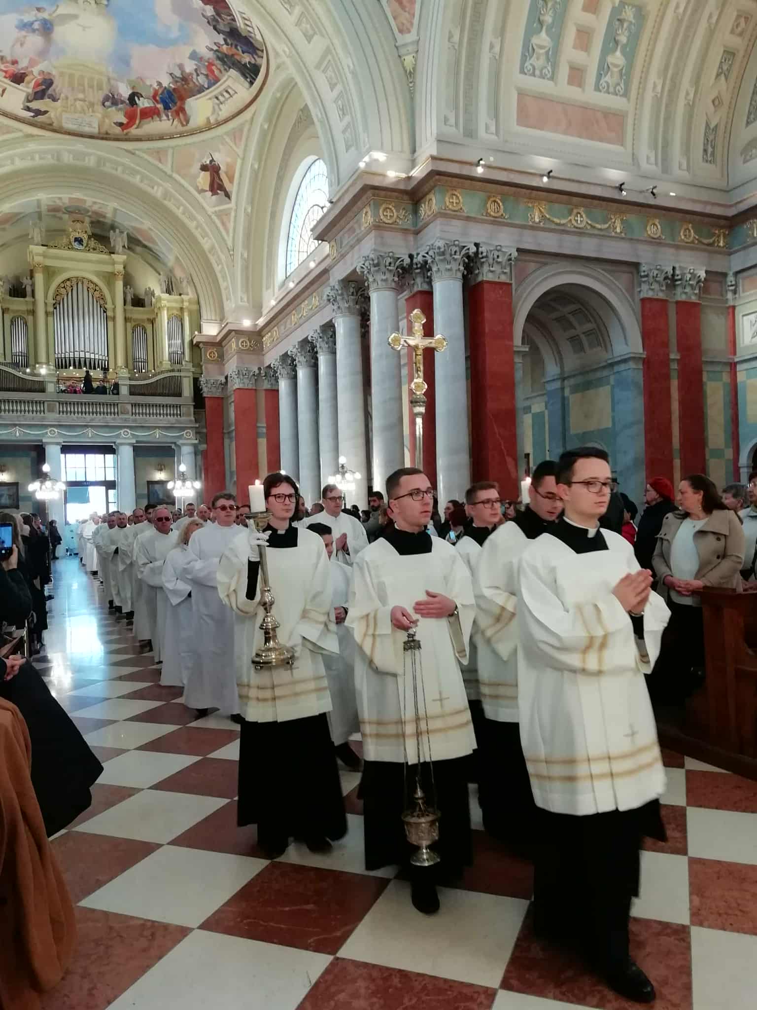 W sobotę, 8 listopada br., w pięknej katedrze w Eger odbyła się uroczysta celebracja udzielenia posługi lektoratu. Wśród pięćdziesięciu osób, które tego dnia zostały włączone w tę ważną funkcję liturgiczną, znalazł się również Janics Tamás – członek Wspólnoty Apostolskiej Świętej Elżbiety z miejscowości Hercegkút. Uroczystości przewodniczył Arcybiskup Egeru, Jego Ekscelencja dr Ternyák Csaba, który w swoim słowie podkreślił znaczenie Słowa Bożego w życiu każdego chrześcijanina oraz odpowiedzialność, jaka spoczywa na tych, którzy zostają powołani do jego głoszenia w zgromadzeniu liturgicznym. Janics Tamás na co dzień pracuje jako nauczyciel informatyki i katecheta w Katolickim Liceum i Technikum im. Świętego Stefana w Sátoraljaújhely. Równocześnie kontynuuje studia teologiczne, przygotowując się do przyjęcia kolejnej posługi – akolitatu. Jego zaangażowanie w życie Kościoła i wspólnoty jest dla wielu inspiracją i świadectwem żywej wiary. W tej podniosłej uroczystości uczestniczyły również Siostra Przełożona M. Kanizja i Siostra M. Agnieszka, dzieląc radość i dumę z tego wyjątkowego wydarzenia. Ich obecność była wyrazem duchowego wsparcia oraz jedności wspólnoty, która towarzyszy Tamásowi na drodze jego formacji i służby Kościołowi.