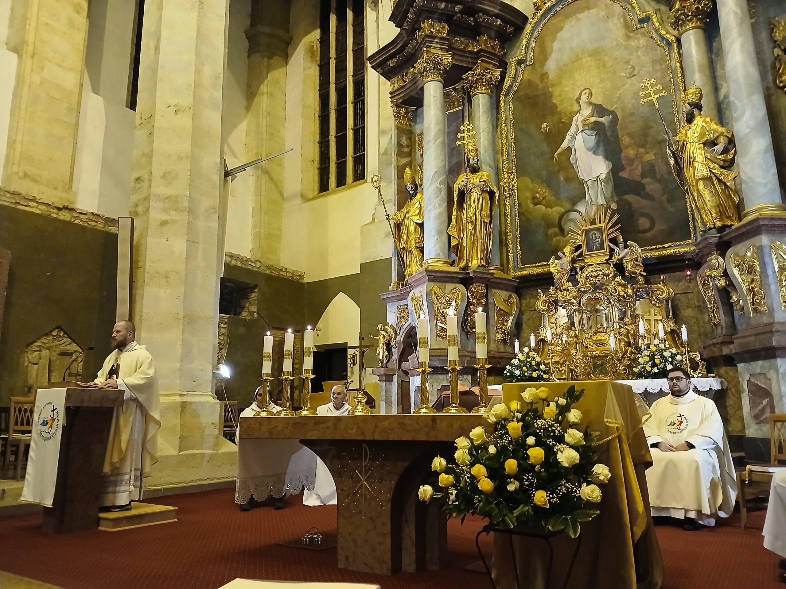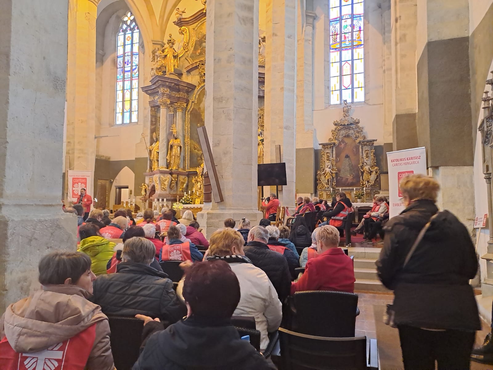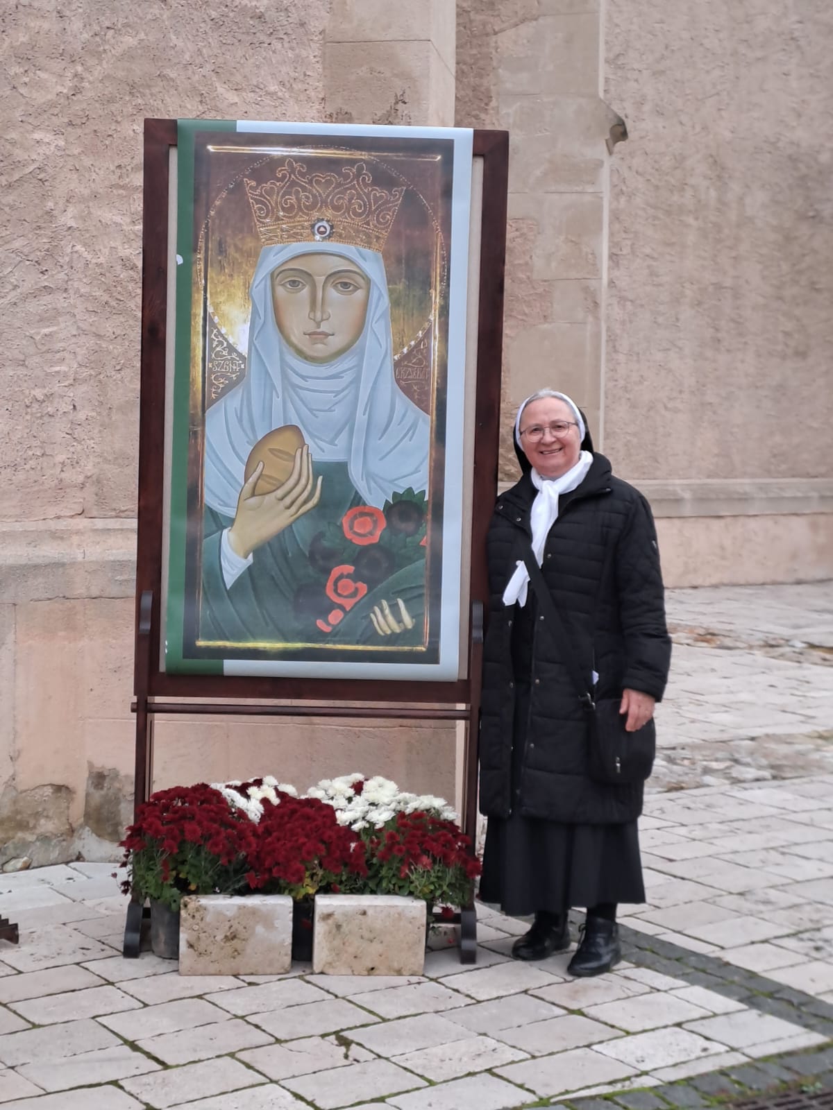 Już od 18-tu lat w Sárospatak obchodzone są „Jesienne Dni Świętej Elżbiety” związane z liturgicznym wspomnieniem. Organizowane są przez naszą parafię – trwają ok. dwa tygodnie i odbywają się w różnych miejscach naszego miasta. W tym roku uroczystości rozpoczęły się 11 listopada we wtorek, w Domu Świętej Elżbiety, prezentacją III wydania znanej książki pt. „Magyarország Virága ”. Prezentacji dokonała dr. Irén Szobó z Nyiregyház. Książka zawiera źródła z XIII wieku, mówiące o życiu św. Elżbiety przetłumaczone z j. łacińskiego na j. węgierski. Redaktorami pozycji są: nieżyjący już Tamás Horvát i dr. Irén Szobó. Do Bazyliki na spotkanie ze św. Elżbietą, do miasta jej narodzenia, przybyło przeszło 650 pielgrzymów z różnych stron Węgier wraz ze swoimi parafialnymi duszpasterzami odpowiedzialnym za Caritas – Spotkanie członków Caritasu prowadził biskup pomocniczy diecezji Szombothely – Fekete Szobolcs Benedek. Program obejmował okazję do spowiedzi, Mszę św., litania do św. Elżbiety i uczczenie relikwii. Po przerwie na posiłek pielgrzymi wrócili do Bazyliki na wspólną modlitwę, adorację oraz wysłuchali konferencję na temat miłosiernej postawy św. Elżbiety wobec potrzebujących. Nasza bazylika w tym dniu zmieniła kolor na czerwony ze względu na ubiór członków Caritasu.