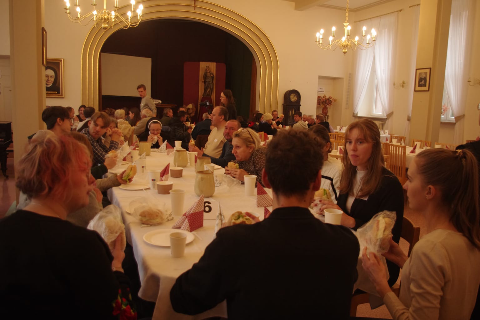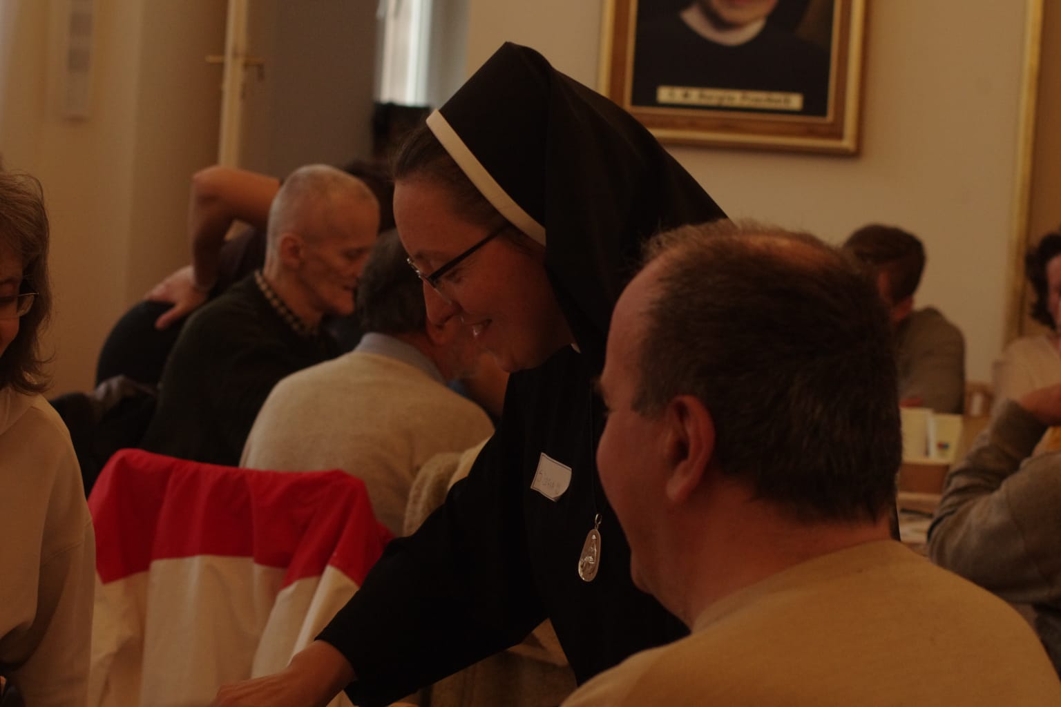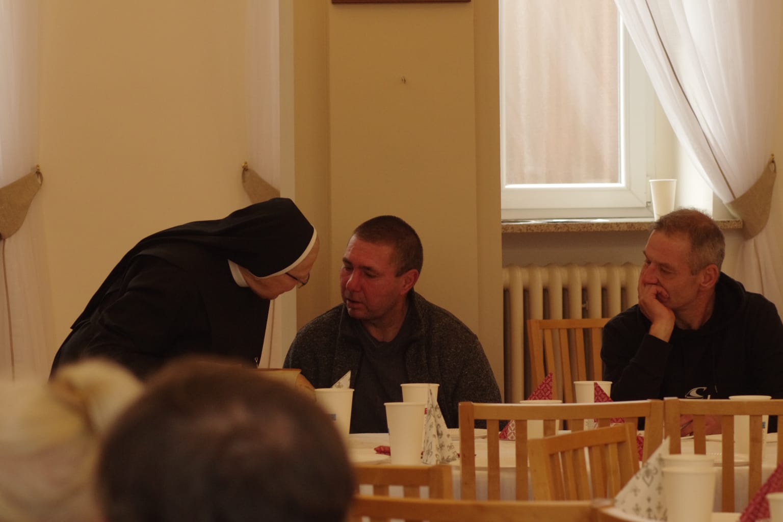 „Ty jesteś moją nadzieją” – 16 listopada pod takim hasłem odbył się dziewiąty Światowy Dzień Ubogiego. W tym dniu w różnych miejscach naszej diecezji, różnych miastach, parafiach, a także w naszym Domu Prowincjalnym odbywały się różne zaplanowane wcześniej przez organizacje i wolontariuszy wydarzenia. Tegoroczne obchody w Domu Prowincjalnym rozpoczęliśmy od modlitwy i śniadania o godzinie 9:00. Każdy z naszych gości mógł zjeść wcześniej przygotowane przez wolontariuszy kanapki oraz napić się ciepłej herbaty. Najważniejsze jednak było spotkanie i rozmowa przy stole. Zależało nam przede wszystkim na tym, aby stworzyć atmosferę relacji, dlatego wolontariuszy z Domowego Kościoła, Fundacji Światło- Życie oraz Diakonii Miłosierdzia było naprawdę wielu. Wśród nich służyły też nasze siostry: S. Prowincjalna M. Franciszka Polaczek, S. Mistrzyni M. Zofia Przybył, S. M. Awelina Brzezina, S. M. Faustryna Glinka, która już dzień wcześniej z młodzieżą przygotowywała kanapki i miejsce na spotkanie i ja. Przy stolikach można było zobaczyć małe, rozmawiające ze sobą grupki. Sam Papież Leon XIV przypomina nam, że osoby ubogie nie są wyłącznie odbiorcami pomocy – są świadkami nadziei i partnerami w budowaniu wspólnoty. Kolejną przestrzeń do dzielenia stworzyła dla wszystkich wolontariuszka Ola, która przygotowała warsztaty na temat wartości i godności człowieka. W grupach przygotowywaliśmy mapę myśli i wykonywaliśmy kolaże. Kolejna dobra dusza – Przemek – przygotował dla nas film o osobach wychodzących z uzależnień fundacji NEFESZ z Wrocławia. Sporo czasu spędził z nami Ks. Arcybiskup Andrzej Przybylski. Wspólnie z naszymi potrzebującymi napił się kawy, a na koniec swoich odwiedzin pobłogosławił wszystkim i zrobił sobie wspólne zdjęcie z wolontariuszami. Przed obiadem znalazł się jeszcze czas na gry planszowe i zjedzenie czegoś słodkiego. W tym czasie chętni mogli skorzystać ze spowiedzi św. O 13:00 zasiedliśmy do przepysznego dwudaniowego obiadu. Nie obyło się bez kilkukrotnych dokładek rosołu i drugiego dania. Po uczcie dla ciała przyszedł czas, aby udać się na ucztę duchową – goście zostali zawiezieni autokarem na Eucharystię do Katedry Chrystusa Króla. Mszę św. pod przewodnictwem abp. Przybylskiego poprzedzała projekcja filmu “Exit, czyli rzecz o wychodzeniu z niewoli”. W homilii metropolita katowicki zachęcił do przyjęcia Bożej miłości: „Nie zamykajcie swoich głów na miłość Pana Boga, tylko ją przyjmijcie, a zobaczycie jak ta miłość Boga zmienia życie, jak potrafi nas wyciągnąć, uwolnić i uzdrowić ze wszystkiego”. Świętowanie zakończyło się wspólnym poczęstunkiem: ciastem i ciepłymi napojami pod katedrą. Potrzebujący zostali obdarowani także darami, m.in. odzieżą, artykułami higienicznymi i konserwami. To nie było święto bezdomnych, uzależnionych, ale święto tych, którzy doświadczają jakiegoś braku, jakiegoś kryzysu i mają potrzebę, by wyciągnąć do nich rękę. Potrzebującym jest każdy z nas. Bez wyjątku. Chętni mogli skorzystać z pomocy przedmedycznej, a także z poradnictwa psychologicznego, zawodowego oraz duchowego. Światowy Dzień Ubogich co roku przypomina nam, jak wiele osób żyje obok nas w samotności, niedostatku i bez wsparcia. Prawdziwa pomoc zaczyna się wtedy, gdy gasną światła wydarzeń, a zostaje codzienność, za którą dziękujemy wszystkim wolontariuszom i siostrom.