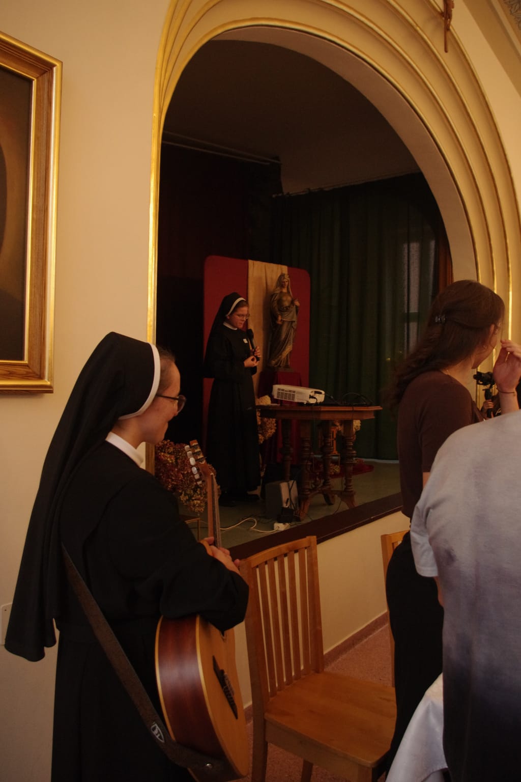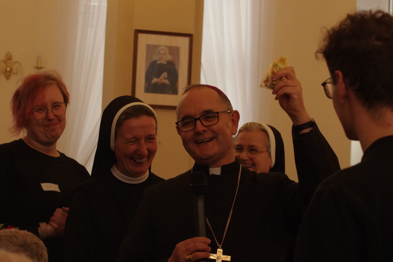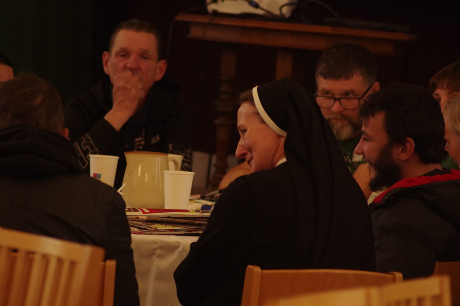 „Ty jesteś moją nadzieją” – 16 listopada pod takim hasłem odbył się dziewiąty Światowy Dzień Ubogiego. W tym dniu w różnych miejscach naszej diecezji, różnych miastach, parafiach, a także w naszym Domu Prowincjalnym odbywały się różne zaplanowane wcześniej przez organizacje i wolontariuszy wydarzenia. Tegoroczne obchody w Domu Prowincjalnym rozpoczęliśmy od modlitwy i śniadania o godzinie 9:00. Każdy z naszych gości mógł zjeść wcześniej przygotowane przez wolontariuszy kanapki oraz napić się ciepłej herbaty. Najważniejsze jednak było spotkanie i rozmowa przy stole. Zależało nam przede wszystkim na tym, aby stworzyć atmosferę relacji, dlatego wolontariuszy z Domowego Kościoła, Fundacji Światło- Życie oraz Diakonii Miłosierdzia było naprawdę wielu. Wśród nich służyły też nasze siostry: S. Prowincjalna M. Franciszka Polaczek, S. Mistrzyni M. Zofia Przybył, S. M. Awelina Brzezina, S. M. Faustryna Glinka, która już dzień wcześniej z młodzieżą przygotowywała kanapki i miejsce na spotkanie i ja. Przy stolikach można było zobaczyć małe, rozmawiające ze sobą grupki. Sam Papież Leon XIV przypomina nam, że osoby ubogie nie są wyłącznie odbiorcami pomocy – są świadkami nadziei i partnerami w budowaniu wspólnoty. Kolejną przestrzeń do dzielenia stworzyła dla wszystkich wolontariuszka Ola, która przygotowała warsztaty na temat wartości i godności człowieka. W grupach przygotowywaliśmy mapę myśli i wykonywaliśmy kolaże. Kolejna dobra dusza – Przemek – przygotował dla nas film o osobach wychodzących z uzależnień fundacji NEFESZ z Wrocławia. Sporo czasu spędził z nami Ks. Arcybiskup Andrzej Przybylski. Wspólnie z naszymi potrzebującymi napił się kawy, a na koniec swoich odwiedzin pobłogosławił wszystkim i zrobił sobie wspólne zdjęcie z wolontariuszami. Przed obiadem znalazł się jeszcze czas na gry planszowe i zjedzenie czegoś słodkiego. W tym czasie chętni mogli skorzystać ze spowiedzi św. O 13:00 zasiedliśmy do przepysznego dwudaniowego obiadu. Nie obyło się bez kilkukrotnych dokładek rosołu i drugiego dania. Po uczcie dla ciała przyszedł czas, aby udać się na ucztę duchową – goście zostali zawiezieni autokarem na Eucharystię do Katedry Chrystusa Króla. Mszę św. pod przewodnictwem abp. Przybylskiego poprzedzała projekcja filmu “Exit, czyli rzecz o wychodzeniu z niewoli”. W homilii metropolita katowicki zachęcił do przyjęcia Bożej miłości: „Nie zamykajcie swoich głów na miłość Pana Boga, tylko ją przyjmijcie, a zobaczycie jak ta miłość Boga zmienia życie, jak potrafi nas wyciągnąć, uwolnić i uzdrowić ze wszystkiego”. Świętowanie zakończyło się wspólnym poczęstunkiem: ciastem i ciepłymi napojami pod katedrą. Potrzebujący zostali obdarowani także darami, m.in. odzieżą, artykułami higienicznymi i konserwami. To nie było święto bezdomnych, uzależnionych, ale święto tych, którzy doświadczają jakiegoś braku, jakiegoś kryzysu i mają potrzebę, by wyciągnąć do nich rękę. Potrzebującym jest każdy z nas. Bez wyjątku. Chętni mogli skorzystać z pomocy przedmedycznej, a także z poradnictwa psychologicznego, zawodowego oraz duchowego. Światowy Dzień Ubogich co roku przypomina nam, jak wiele osób żyje obok nas w samotności, niedostatku i bez wsparcia. Prawdziwa pomoc zaczyna się wtedy, gdy gasną światła wydarzeń, a zostaje codzienność, za którą dziękujemy wszystkim wolontariuszom i siostrom.