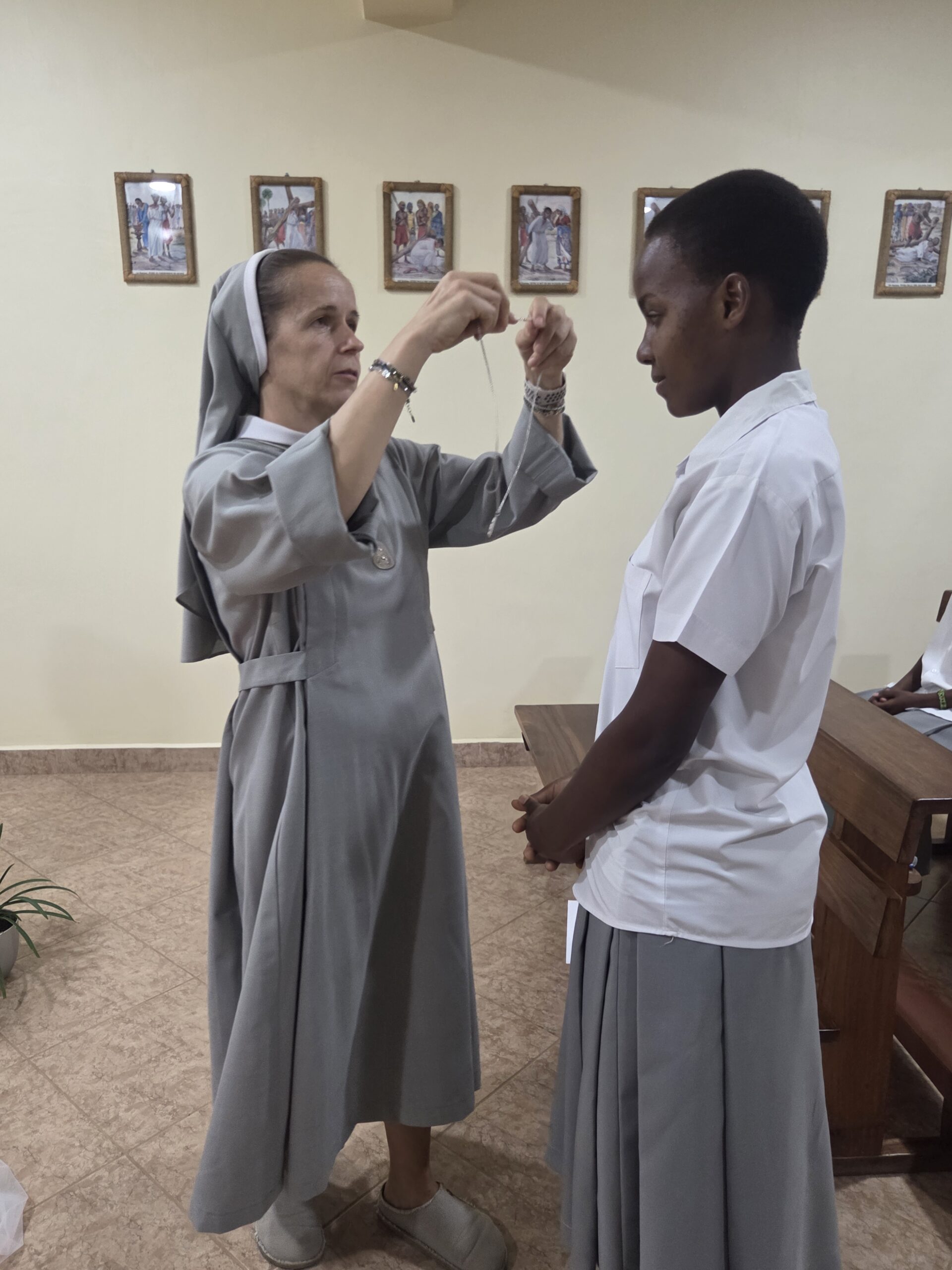 W listopadzie nasza wspólnota zakonna w Tanzanii przeżywała szczególny czas łaski i radości. Do grona aspirantek dołączyły cztery młode dziewczęta: Winfrida, Happiness, Dorice i Gizzness. W naszej domowej kaplicy odbyła się uroczysta modlitwa wspólnotowa, podczas której zostały one oficjalnie przyjęte do postulatu – pierwszego etapu formacji zakonnej. Ten wyjątkowy moment był wyrazem ich gotowości, by rozeznawać i pogłębiać swoje powołanie do życia konsekrowanego. W atmosferze skupienia i modlitewnego zawierzenia, nasze siostry – wraz z nowymi postulantkami – oddały się Bożej Opatrzności, prosząc o łaskę wytrwałości, zaufania i gorliwości w codziennym naśladowaniu Chrystusa. Wspólnota modliła się wspólnie, aby Pan prowadził te młode serca drogami swojej miłości i uczył je wierności Jego wezwaniu. To piękny i pokrzepiający znak, że Duch Święty nie przestaje działać i pociągać kolejnych młodych ludzi do oddania się Bogu w życiu zakonnym.