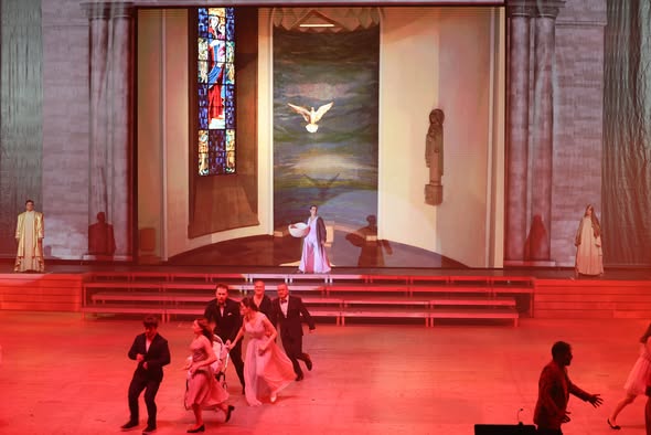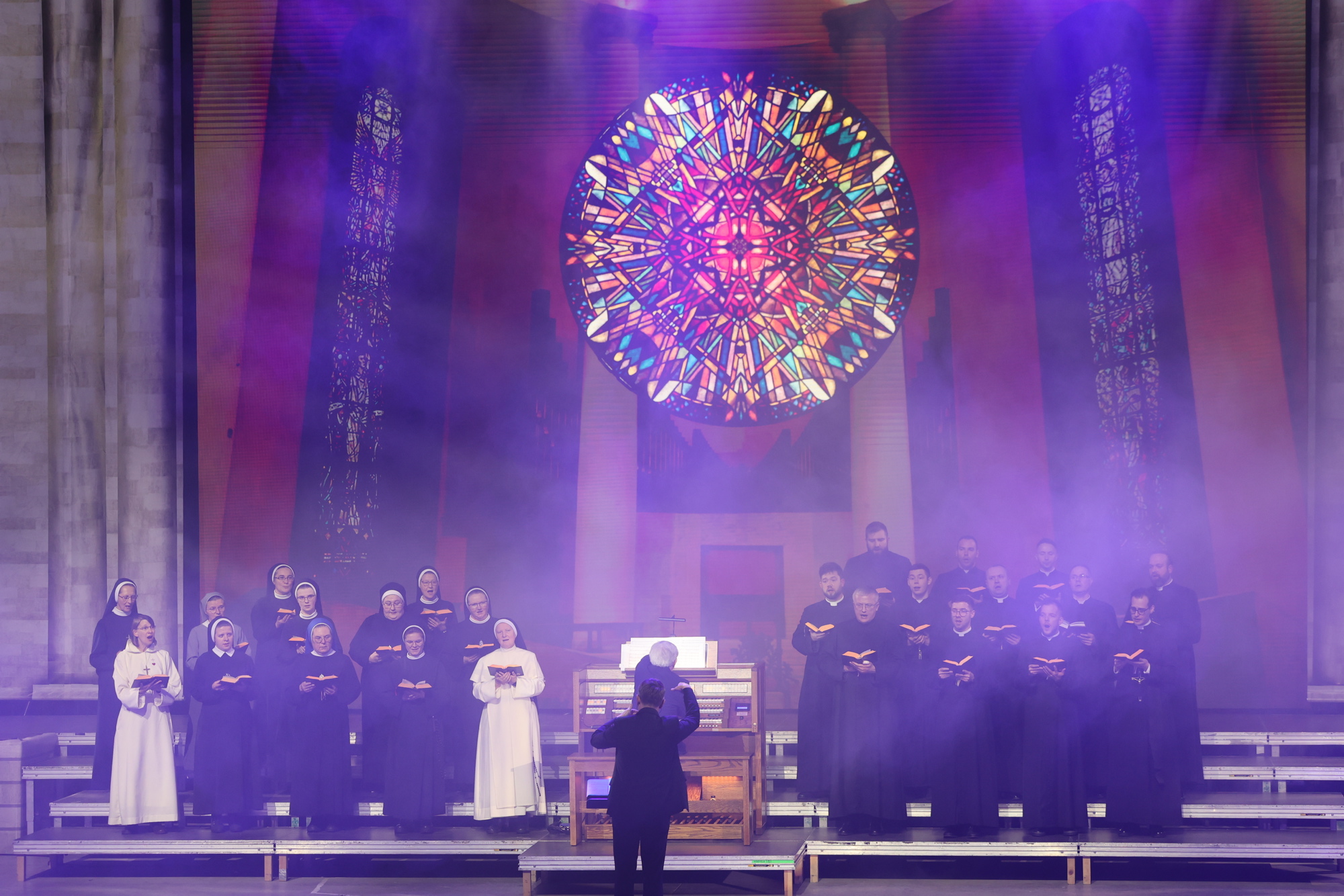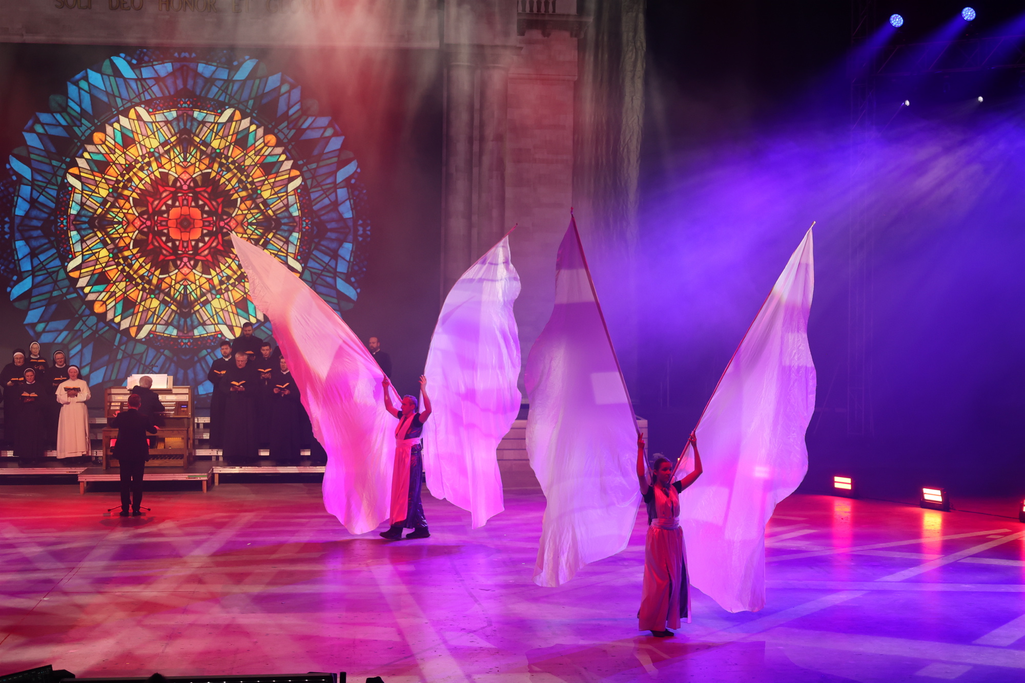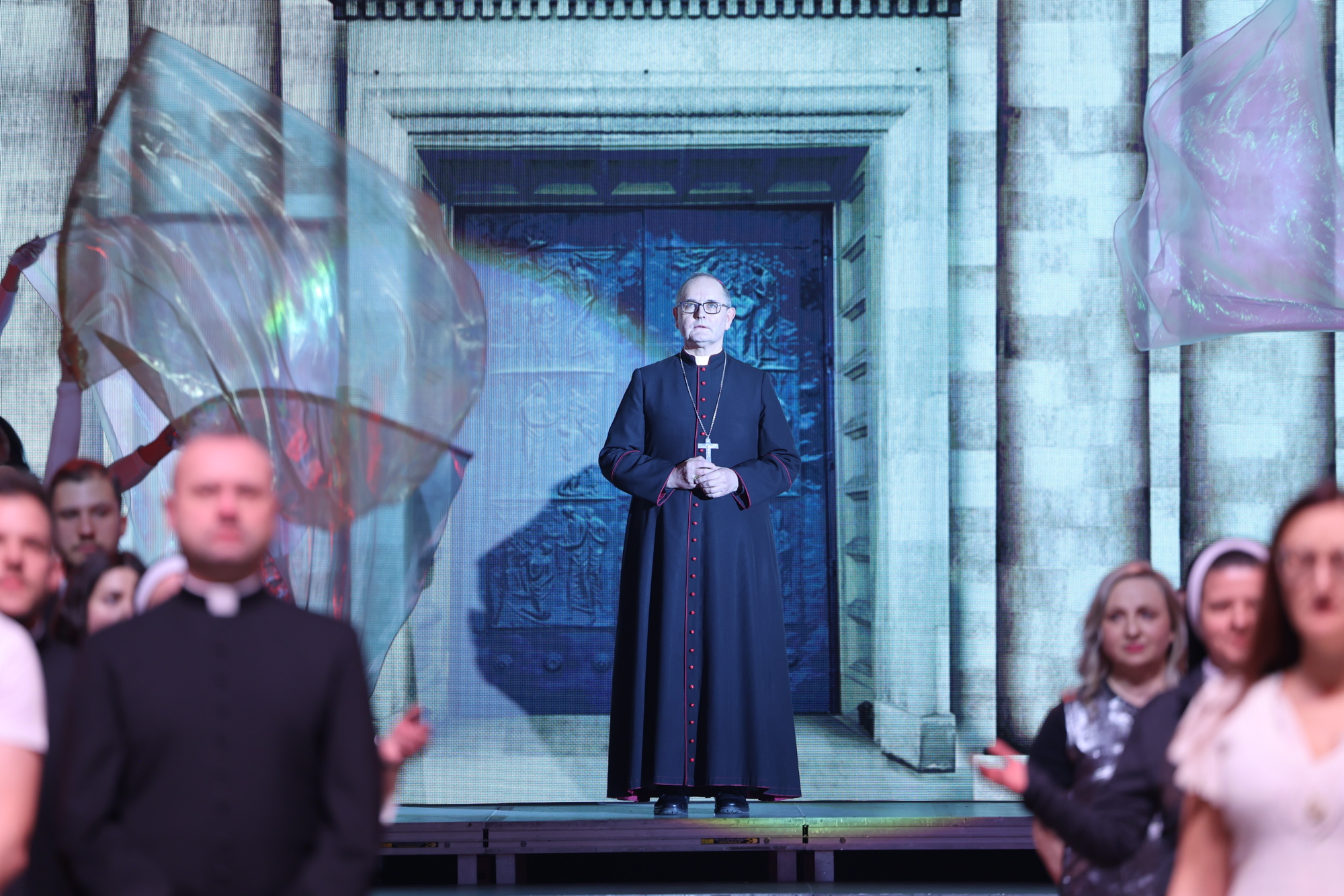 W środę 26 listopada br., Katowicki Spodek zamienił się  w monumentalną scenę, która stała się tłem dla jednego z najważniejszych wydarzeń artystycznych tego roku – widowiska „Katedra”, zamykającego obchody 100-lecia Archidiecezji Katowickiej. Był to imponujący spektakl, łączący światło, dźwięk, taniec i duchową głębię. Już od wczesnych godzin porannych nasze Siostry S. M. Natalia i s. Maria uczestniczyły w ostatnich przygotowaniach do wydarzenia w Spodku. Znalazły się w grupie sióstr zakonnych różnych zgromadzeń, które współtworzyły jedno z najbardziej poruszających momentów wieczoru. Widowisko „Katedra” okazało się nie tylko dziełem sztuki scenicznej, ale także głębokim świadectwem wiary i tożsamości Śląska. W kilkunastu sugestywnych scenach artyści – zarówno zawodowi, jak i amatorzy – poprowadzili publiczność przez historię regionu, osnutą wokół chrześcijańskich wartości i śląskiej tradycji. Na scenie pojawiło się ponad 600 wykonawców, w tym orkiestra symfoniczna, chóry, zespoły taneczne, a także osoby z różnych środowisk, w tym z niepełnosprawnościami. Nie zabrakło również wyjątkowych gości, podczas prób udało się spotkać  prof. Juliana Gembalskiego, znanego i cenionego organistę, który podczas widowiska wystąpił wraz z Orkiestrą Symfoniczną Afidare Musicae.  Reżyserem widowiska był Mariusz Kozubek, a muzykę specjalnie na tę okazję skomponował Piotr Solorz. Choreografię przygotował Alberto Pecetto, nadając całości świeżości i ekspresji. Spektakl powstawał przez dwa lata, a jego twórcy połączyli siły środowisk artystycznych, społecznych i religijnych, tworząc wydarzenie, które trudno będzie zapomnieć.