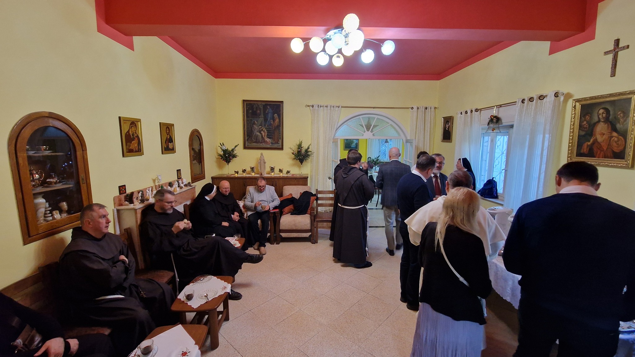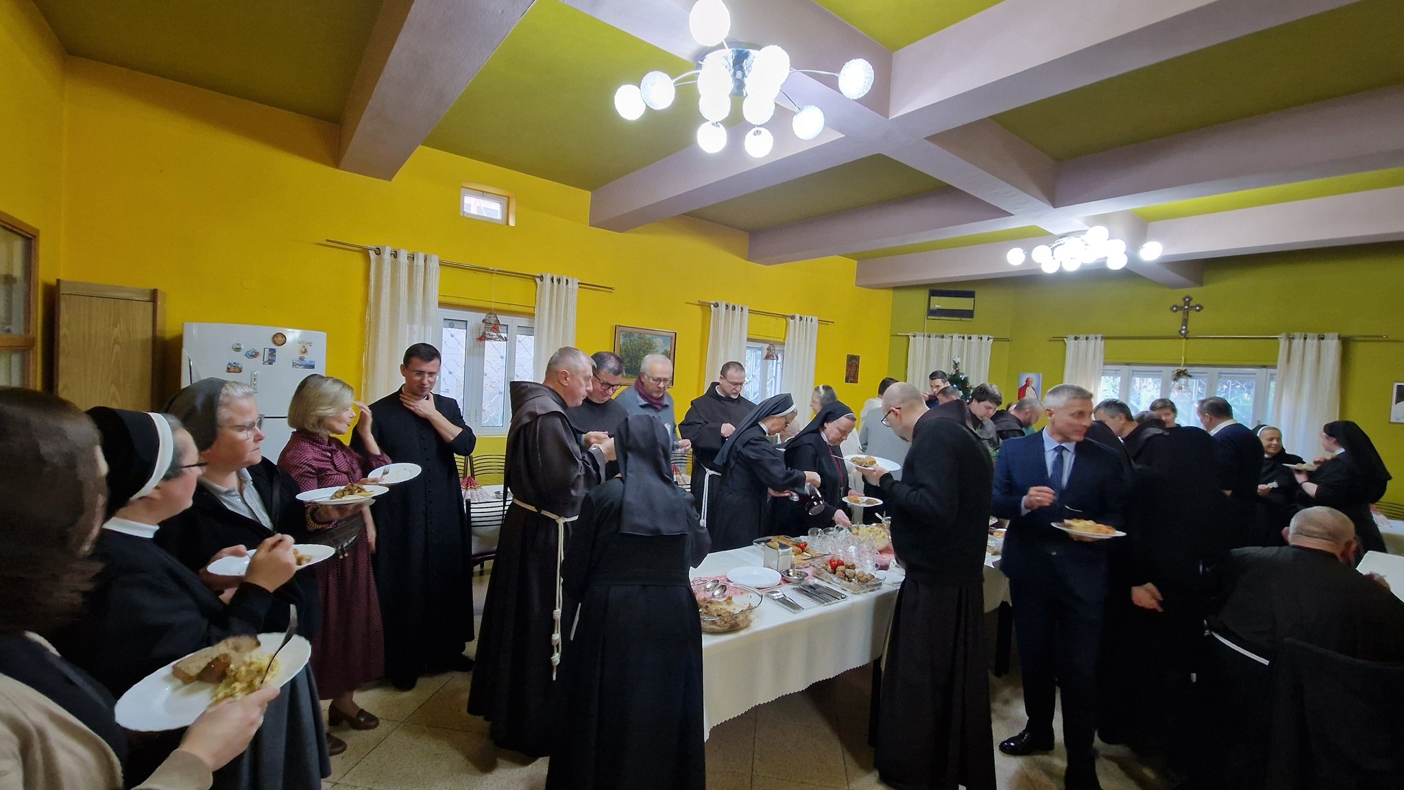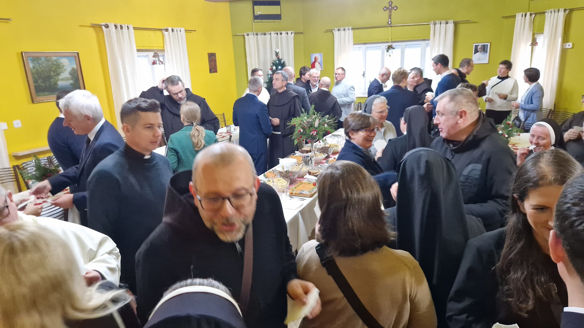 W środę, 17 grudnia br., w Nowym Domu Polskim w Jerozolimie odbyło się Spotkanie Opłatkowe zorganizowane z inicjatywy Ambasady Rzeczypospolitej Polskiej w Tel Awiwie. W wydarzeniu wzięli udział przedstawiciele Ambasady RP w Tel Awiwie i Ramallah, duchowieństwo – Siostry Zakonne, Bracia, Księża i Ojcowie – posługujący na co dzień w Ziemi Świętej. Było to wyjątkowe spotkanie, pełne wzruszeń, modlitwy, wspólnego śpiewu kolęd oraz życzeń – w duchu polskiej tradycji i jedności. W ciepłym i serdecznym powitaniu, Siostra M. Róża podkreśliła symboliczne znaczenie tego spotkania: “Radość ze wspólnego kolędowania i łamania się opłatkiem w Nowym Domu Polskim to spełnienie marzeń i intencji, jakie towarzyszyły śp. Księdzu Pinciórkowi – fundatorowi Starego Domu Polskiego. Pamiętamy również wysiłki Sióstr, a szczególnie Siostry M. Innocenty, dzięki którym powstał Nowy Dom Polski, miejsce, w którym Polacy w Jerozolimie mogą się spotykać, wspólnie przeżywać święta, pielęgnować narodowe tradycje i wzmacniać wspólnotowe więzi”. Gościem honorowym wydarzenia był Ambasador RP, Pan Maciej Hunia, który w swoim wystąpieniu złożył uczestnikom świąteczne życzenia, przede wszystkim życząc pokoju, dobra szczególnie upragnionego i potrzebnego w regionie, który od wieków jest ziemią wielu religii, kultur, ale także napięć. Spotkanie przebiegło w ciepłej, rodzinnej atmosferze. Śpiewano polskie kolędy, dzielono się opłatkiem, wymieniano życzenia i rozmowy. Był to czas umacniania wspólnoty, odnajdywania nadziei i poczucia przynależności, tak ważnych w czasie oczekiwania na Boże Narodzenie.