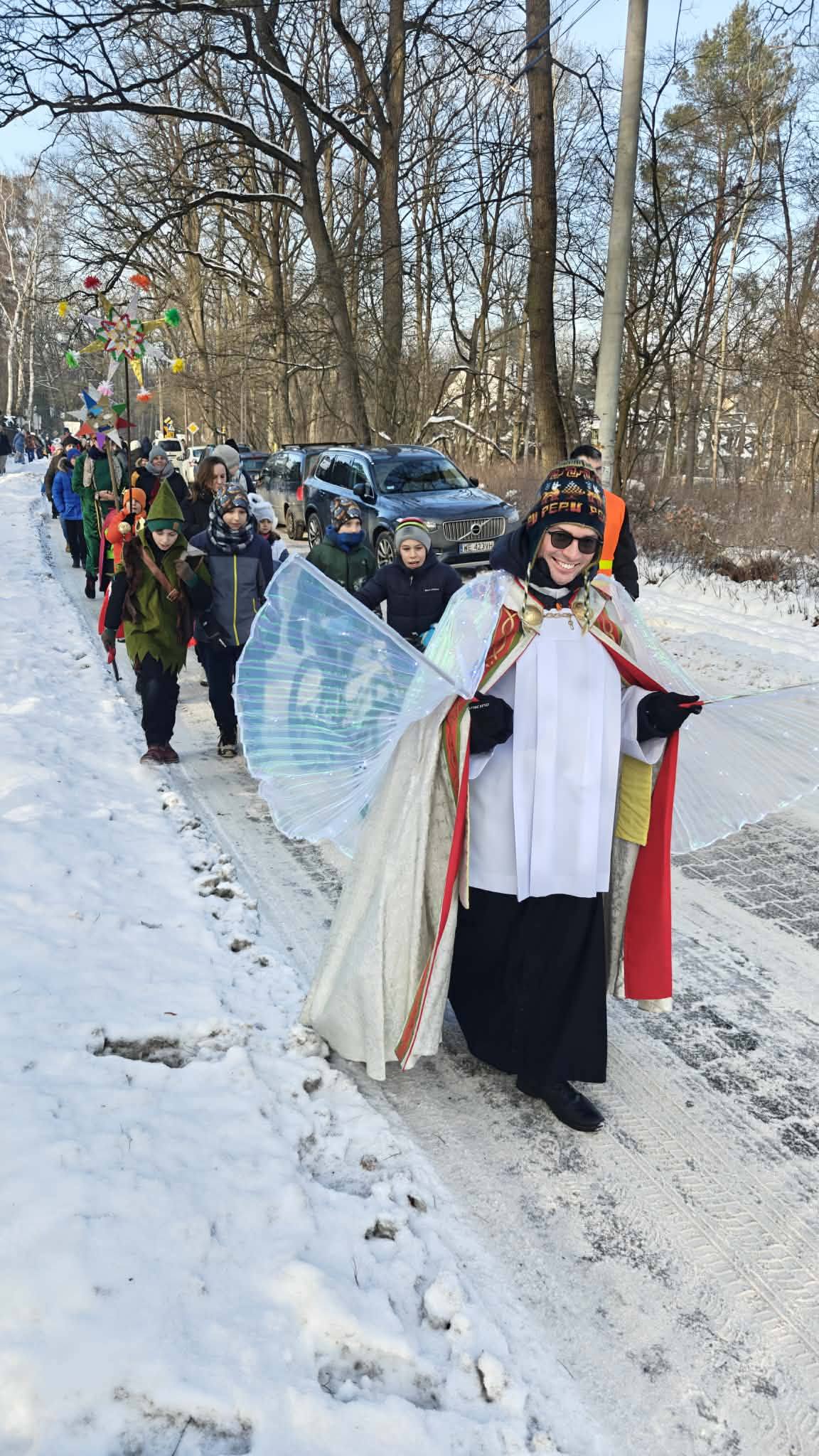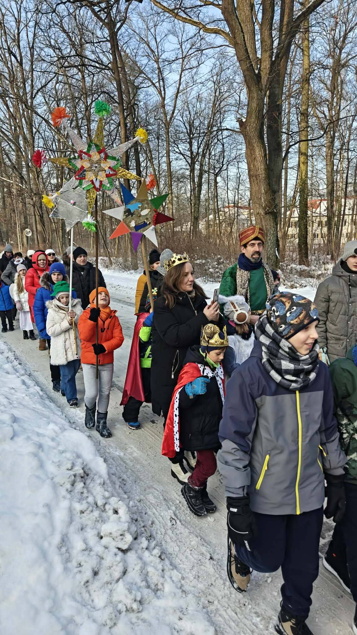 Uroczystość Objawienia Pańskiego była w Parafii św. Huberta w Zalesiu Górnym wyjątkowym czasem radości, wspólnej modlitwy i budowania więzi we wspólnocie. Tego dnia odbyło się rodzinne kolędowanie, które zgromadziło parafian w różnym wieku, łącząc pokolenia we wspólnym śpiewie tradycyjnych polskich kolęd. Rodzinne kolędowanie stało się pięknym świadectwem żywej wiary i przywiązania do chrześcijańskiej tradycji. Wspólny śpiew kolęd przypominał o tajemnicy Bożego Narodzenia oraz o drodze Trzech Króli, którzy podążali za gwiazdą, aby oddać pokłon Nowonarodzonemu. Radosna atmosfera, zaangażowanie rodzin oraz dzieci sprawiły, że wydarzenie miało wyjątkowo ciepły i świąteczny charakter. W dalszej części dnia wspólnota miała okazję do nawiedzenia domu naszych Sióstr w Zalesiu. Był to czas pełen skupienia i wdzięczności za ich obecność oraz posługę. W kaplicy odbyła się wspólna modlitwa, podczas której powierzano Bogu intencje parafii, rodzin oraz wszystkich uczestników spotkania. Modlitwa była momentem wyciszenia i duchowego umocnienia, podkreślającym wspólnotowy wymiar wiary. Ponieważ na zewnątrz był siarczysty mróz, Siostry przygotowały ognisko i gorącą herbatę.