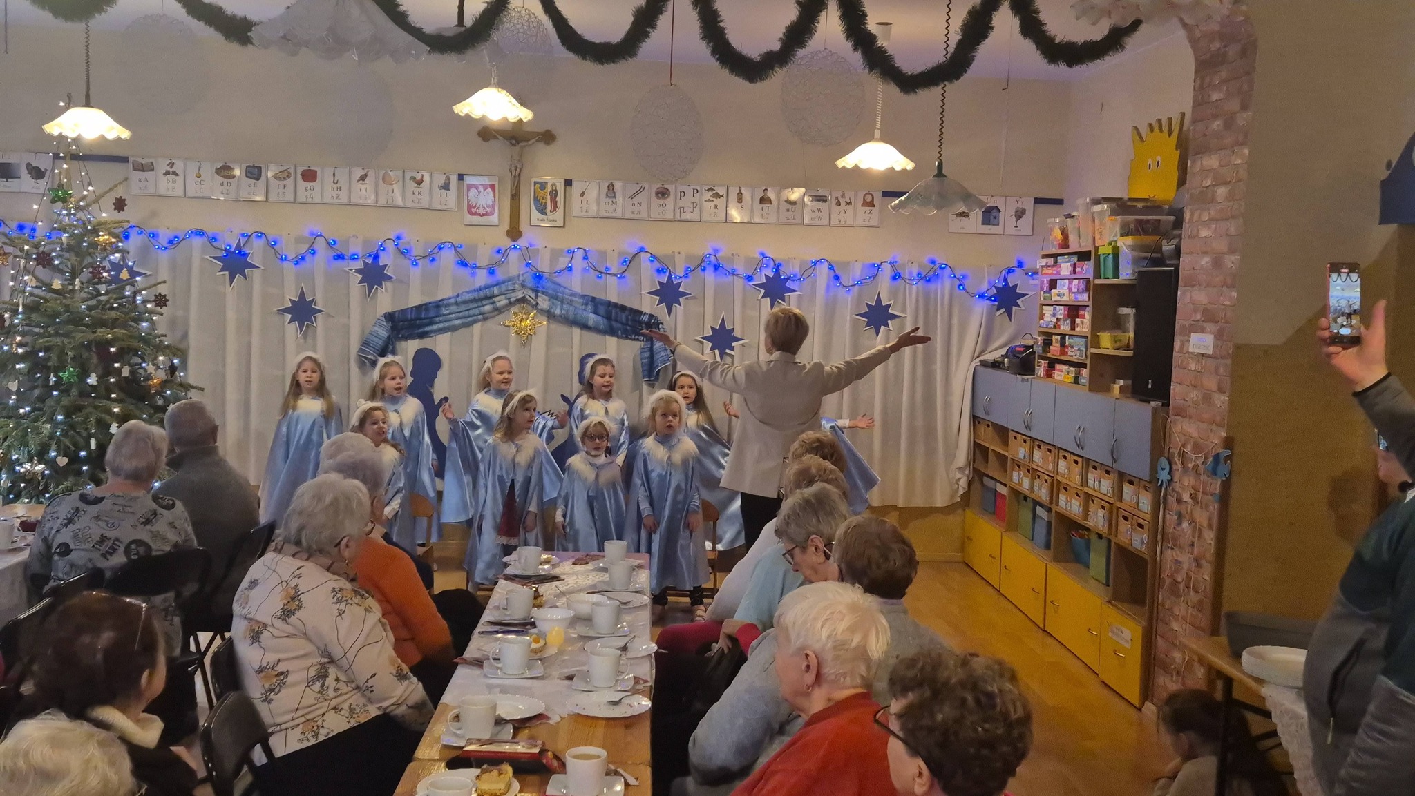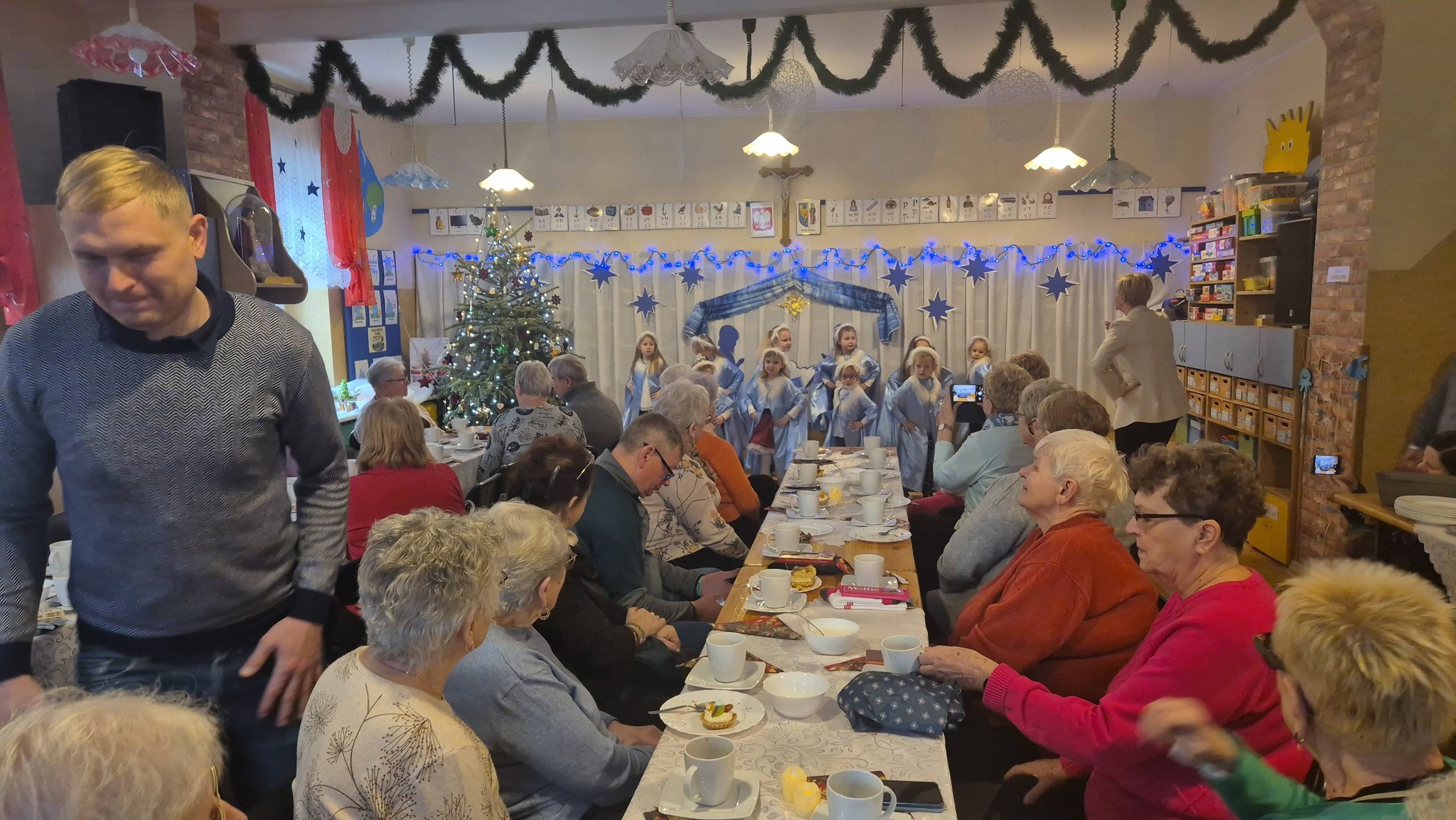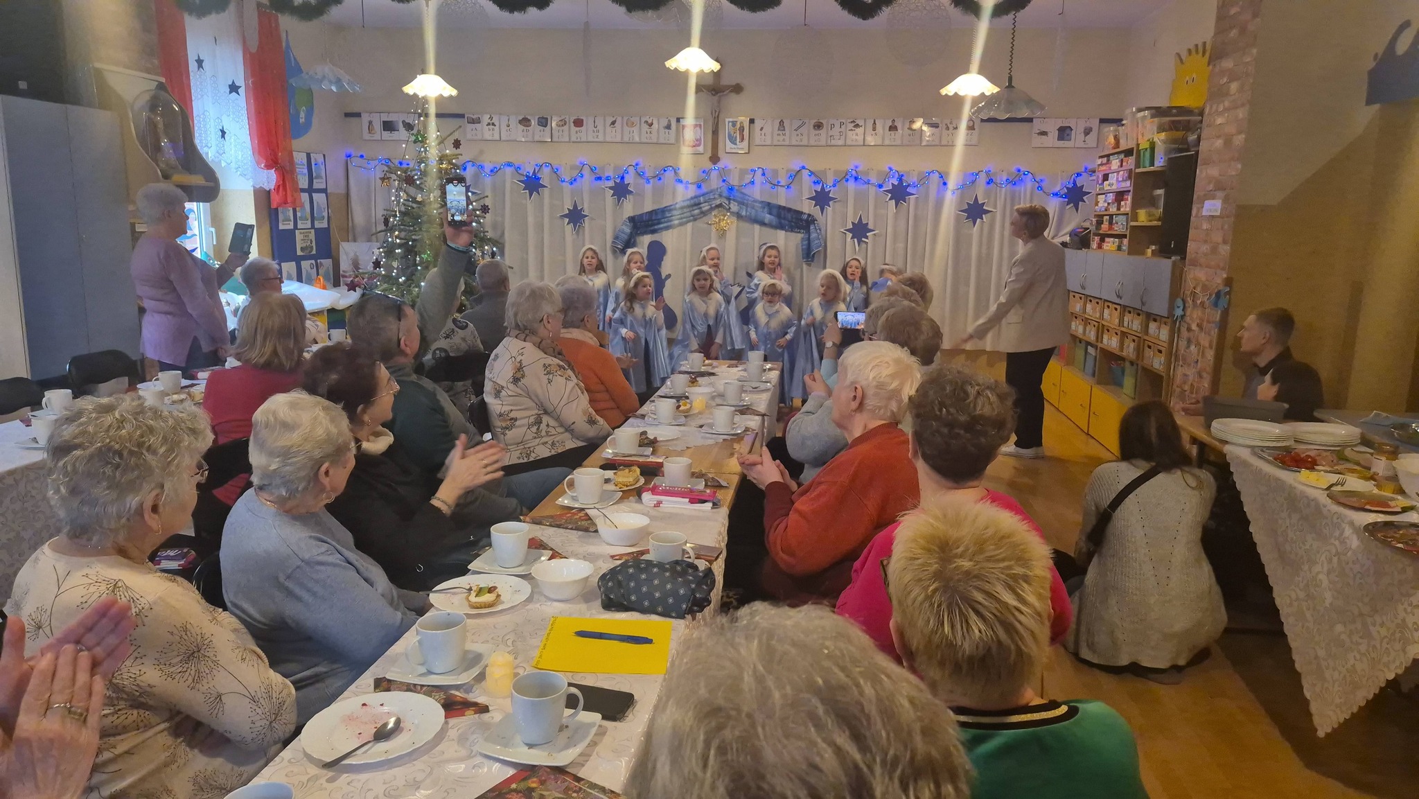 W okresie bożonarodzeniowym przedszkole w Rudzie Śląskiej – Orzegowie stało się po raz kolejny miejscem spotkania międzypokoleniowego. W murach placówki gościli seniorzy, którzy wspólnie z dziećmi przeżywali radosne kolędowanie. Szczególnym gościem był dziecięcy zespół “Róże św. Elżbiety”, który z wielkim zaangażowaniem i sercem zaprezentował piękne kolędy i pastorałki. Mali artyści wzruszyli zgromadzonych gości, a ich występ stał się prawdziwym darem radości i nadziei. Dla seniorów było to niezwykle ważne doświadczenie chwila wyrwania z codziennej samotności i poczucia zapomnienia. Wspólne śpiewanie kolęd stworzyło atmosferę bliskości i jedności. Spotkanie przy kolędzie stało się przestrzenią budowania relacji, wzajemnego słuchania i dzielenia się dobrem. Po części artystycznej wszyscy zostali zaproszeni na agapę, był to czas rozmów, serdecznych gestów i wspólnego bycia razem. To wydarzenie pokazało, jak wielką wartość mają takie inicjatywy. Łączą pokolenia, uczą empatii i wrażliwości, a przede wszystkim przypominają, że nikt nie powinien być sam – zwłaszcza w tak szczególnym czasie, jakim jest okres Bożego Narodzenia.