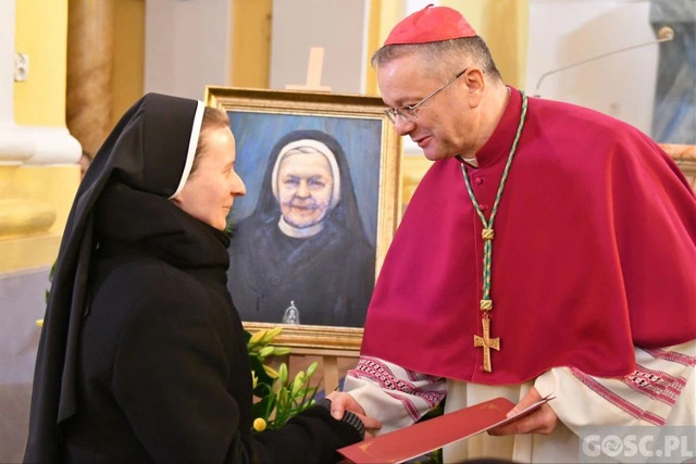 Dzisiaj przeżywamy trzecią rocznicę uroczystego otwarcia procesu beatyfikacyjnego Służebnicy Bożej siostry M. Iwony Król na szczeblu diecezjalnym. Wydarzenie to miało miejsce w kościele pw. św. Stanisława Biskupa i Męczennika we Wschowie – świątyni szczególnie bliskiej sercu siostry M. Iwony, której z oddaniem służyła, dbając o jej piękno i bezpieczeństwo, a nawet narażając własne życie. Uroczystościom przewodniczył Ksiądz Biskup Tadeusz Lityński, który dokonał oficjalnego otwarcia procesu beatyfikacyjnego, zaprzysiągł Komisję Historyczną oraz Trybunał Diecezjalny, a następnie przewodniczył Mszy Świętej. Był to dzień o głębokim znaczeniu religijnym i historycznym, który poruszył serca wielu wiernych i na nowo przywołał postać tej wyjątkowej siostry zakonnej. Życie Służebnicy Bożej siostry M. Iwony Król naznaczone było prostotą, cichością i wiernością codziennym obowiązkom. W każdym człowieku potrafiła dostrzec dobro, „sercem patrzyła na bliźniego”, niosąc pomoc, pocieszenie i umocnienie w wierze. Jej miłość do Chrystusa Eucharystycznego i Matki Najświętszej oraz gotowość do poświęcenia są dziś dla nas czytelnym i aktualnym świadectwem ewangelicznej miłości. Dzisiejsza rocznica jest okazją do wdzięczności Bogu za dar jej życia oraz do refleksji nad własnym powołaniem. Przykład siostry M. Iwony przypomina, że świętość rodzi się z wierności w małych sprawach, z czystego serca i odwagi czynienia dobra tam, gdzie Pan Bóg nas posyła.