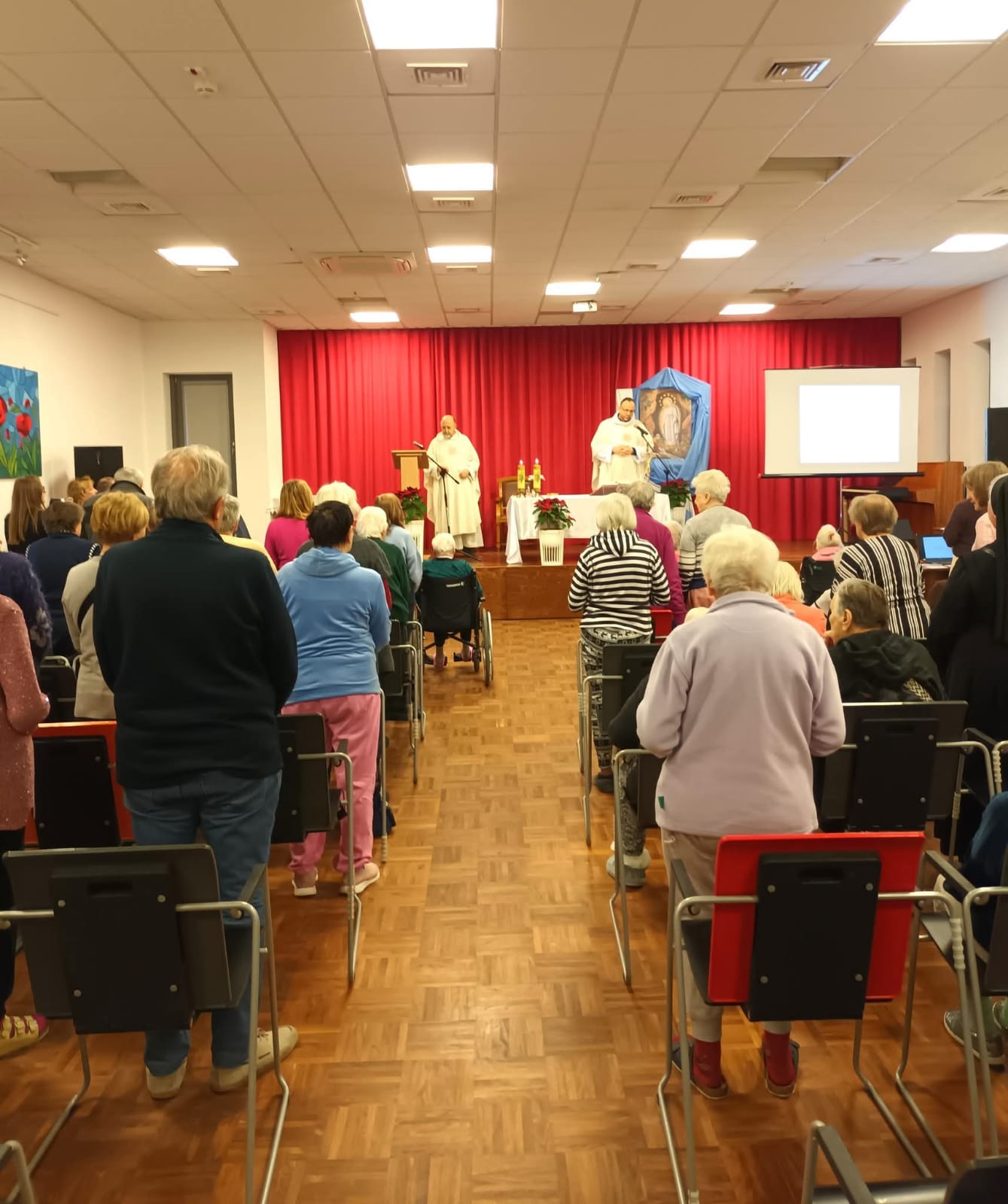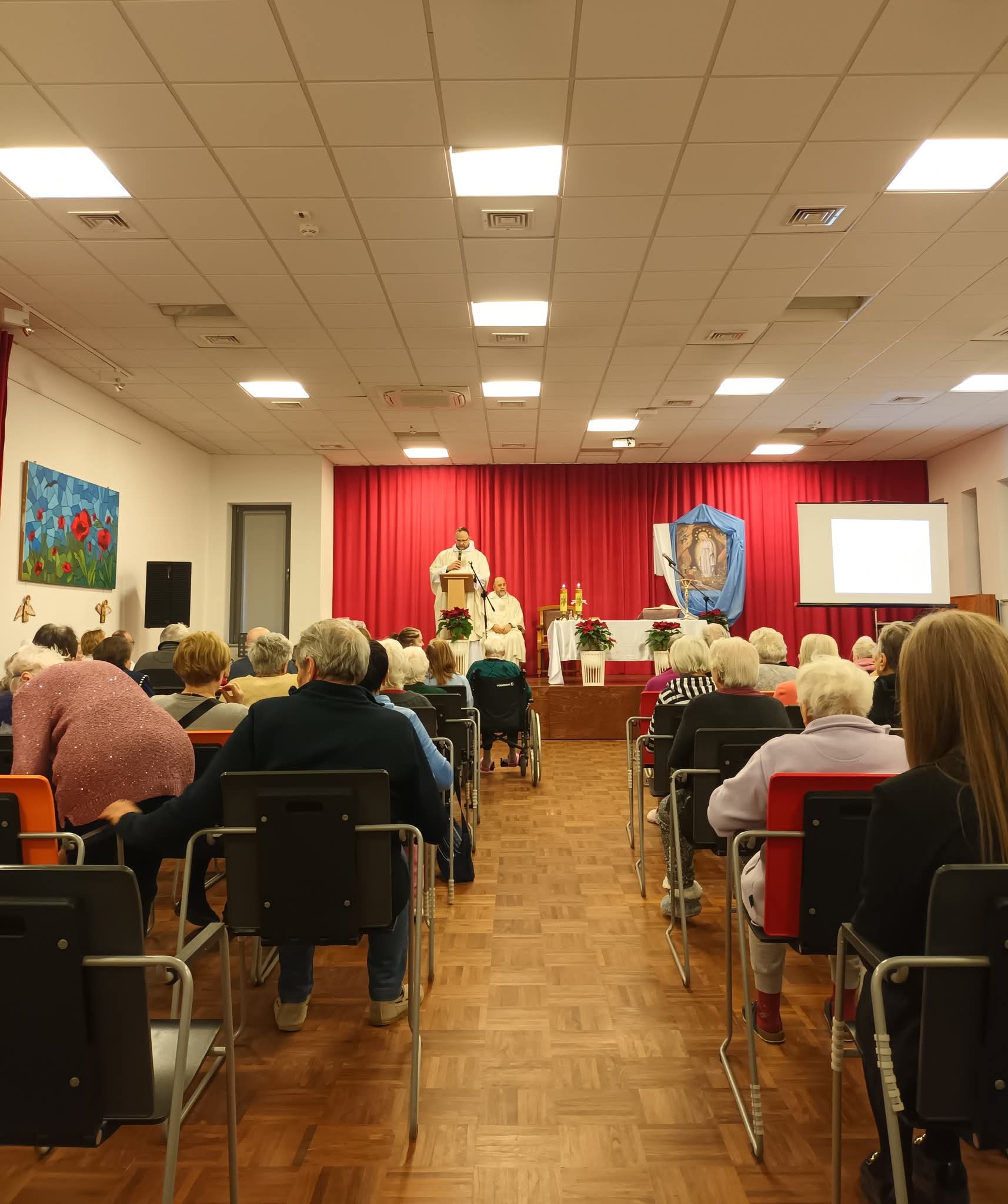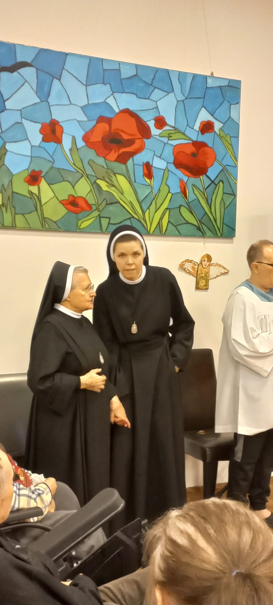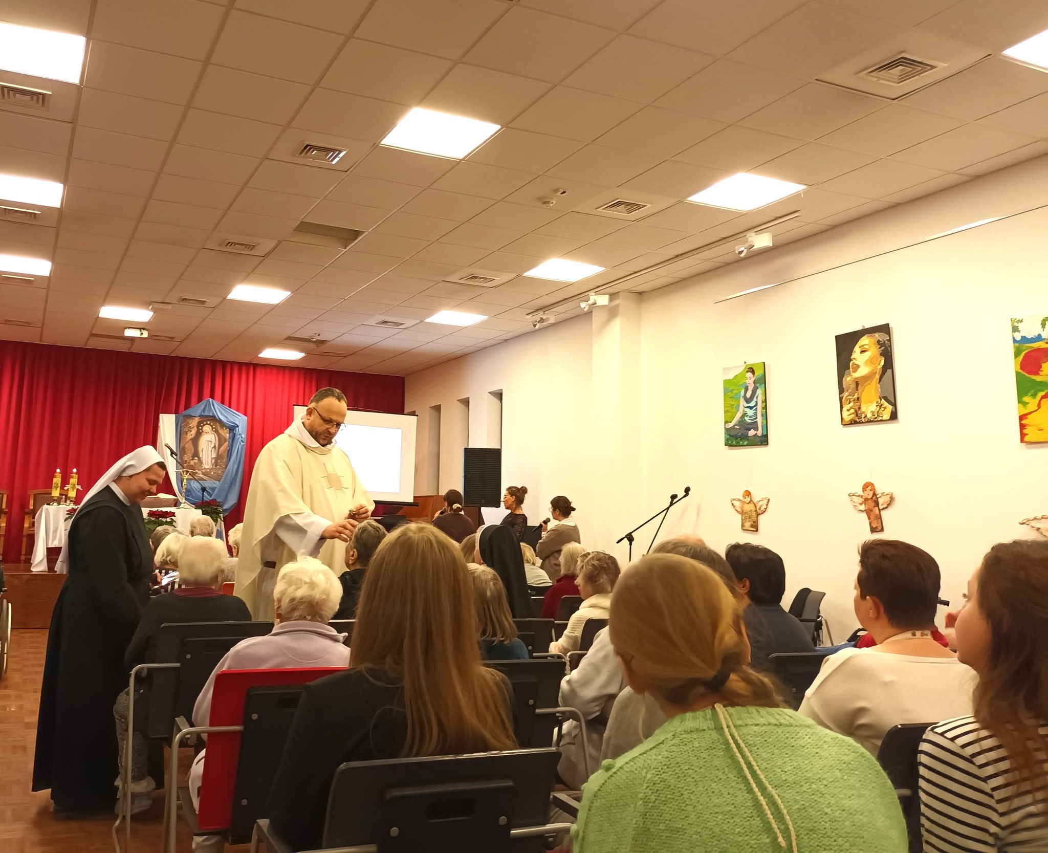 Z okazji Światowego Dnia Chorych w Centrum Alzheimera w Warszawie odbyło się wyjątkowe spotkanie, które zgromadziło podopiecznych ośrodka, personel oraz zaproszonych gości. Centralnym punktem uroczystości była Msza Święta, podczas której udzielony został sakrament chorych, który dla wielu uczestników był momentem głębokiego duchowego przeżycia. Modlitwa wspólnoty oraz gest namaszczenia stały się widzialnym znakiem Bożej troski i umocnienia dla osób zmagających się z chorobą. W organizację i przebieg uroczystości aktywnie włączyły się nasze Siostry Nowicjuszki wraz z Siostrą Mistrzynią M. Hiacyntą i s. M. Janą. Po zakończeniu Mszy Świętej siostry rozdawały tradycyjne elżbietańskie bułeczki.