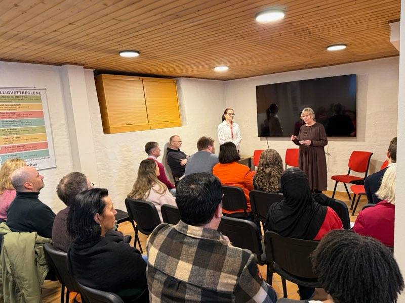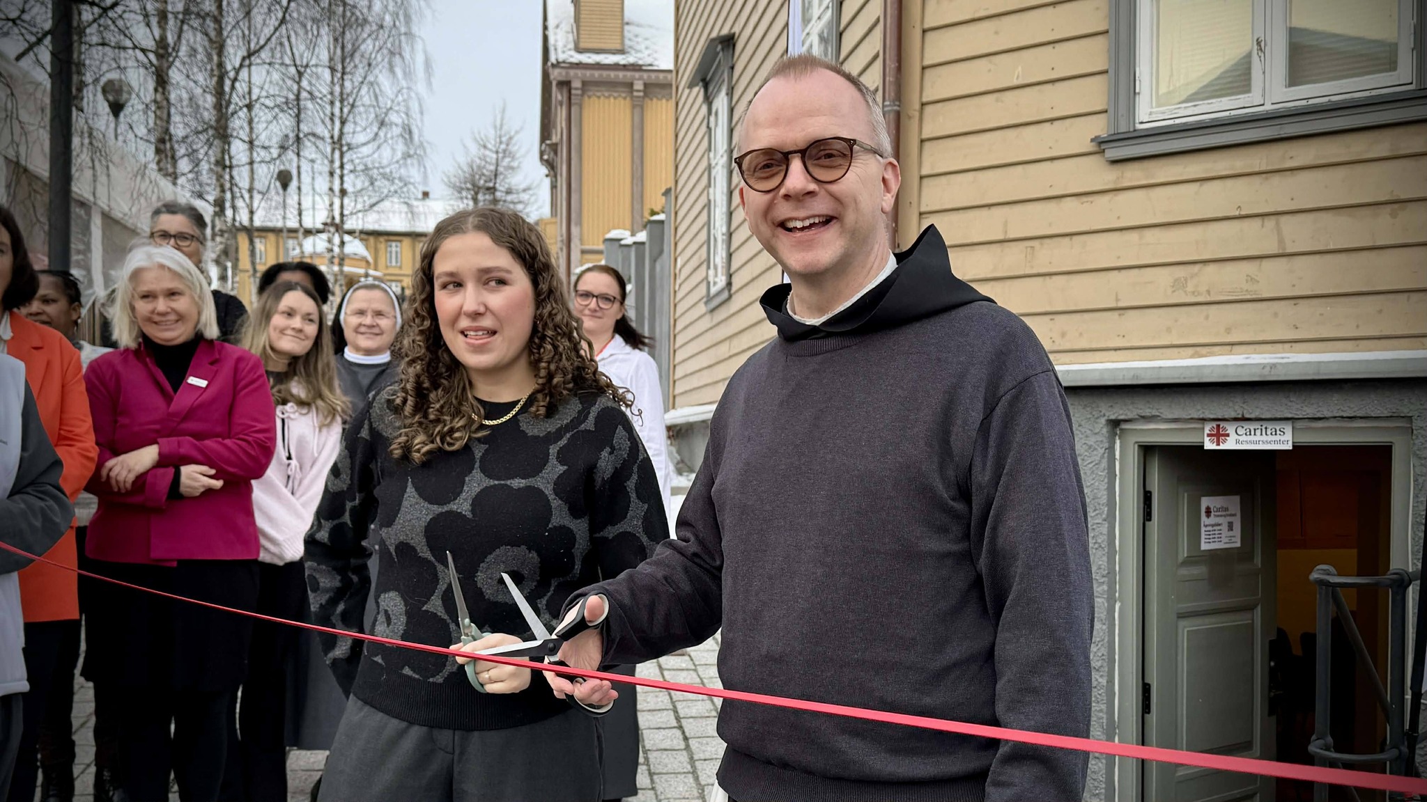 W ostatnim czasie odbyło się uroczyste otwarcie nowej siedziby Centrum Zasobowego Caritas w Tromsø. Od tego dnia lokal przy Storgata 94 – położony w samym sercu miasta, przy głównej bramie Tromsø – stał się miejscem jeszcze bardziej dostępnym i otwartym dla wszystkich, którzy potrzebują wsparcia. To wydarzenie stanowi ważny kamień milowy dla lokalnej społeczności, środowiska imigrantów oraz całego wolontariatu zaangażowanego w działania na rzecz solidarności i integracji. Szczególnym zaszczytem była obecność biskupa Erika Vardena, którego udział i skierowane do zebranych słowo podkreśliły duchowy wymiar tego dzieła. W uroczystości uczestniczył również ks. Rafał Ochojski, mianowany Księdzem Delegatem Lokalnym, który będzie wspierał inicjatywy Caritas i otaczał troską duszpasterską o osoby znajdujące się w trudnej sytuacji życiowej. W wydarzeniu wzięły udział także nasze Siostry: s. M. Karolina i s. M. Asumpta, które poprzez swoją codzienną posługę i zaangażowanie współtworzą przestrzeń wsparcia, życzliwości i towarzyszenia osobom potrzebującym. Centrum Caritas w Tromsø działa od 2019 roku. Od początku swojego istnienia jest ważnym miejscem spotkań i realnej pomocy dla imigrantów oraz osób nowo przybyłych, znajdujących się w sytuacjach narażonych na niebezpieczeństwo lub wykluczenie. Poprzez projekty lokalne i krajowe, poradnictwo i doradztwo niskoprogowe, kursy języka norweskiego, kawiarnię językową oraz praktyczne wsparcie w procesie integracji pomagamy budować mosty między ludźmi a możliwościami, jakie oferuje norweskie społeczeństwo. Nowa siedziba umożliwia prowadzenie jeszcze bardziej dostępnej, nowoczesnej i holistycznej działalności. Oferujemy kompleksowe wsparcie osobom poszukującym pomocy w odnalezieniu się na rynku pracy, w kontaktach z instytucjami publicznymi, w edukacji językowej oraz w aktywnym uczestnictwie w życiu społecznym. Nie byłoby to możliwe bez ogromnego zaangażowania wolontariuszy. To dzięki ich ofiarności, kompetencjom i otwartym sercom Caritas może każdego dnia odpowiadać na konkretne potrzeby ludzi. Wolontariat pozostaje sercem naszego Centrum. W uroczystości wzięli udział partnerzy oraz przedstawiciele gminy Tromsø, władz powiatu, Kościoła Norweskiego, Kościoła Katolickiego, Czerwonego Krzyża, Misji Miejskiej Kościoła, SEIF oraz wielu innych lokalnych organizacji non-profit. Wspólne rozmowy, wykłady i debaty panelowe podkreśliły znaczenie współpracy oraz skoordynowanych działań na rzecz integracji i solidarności.