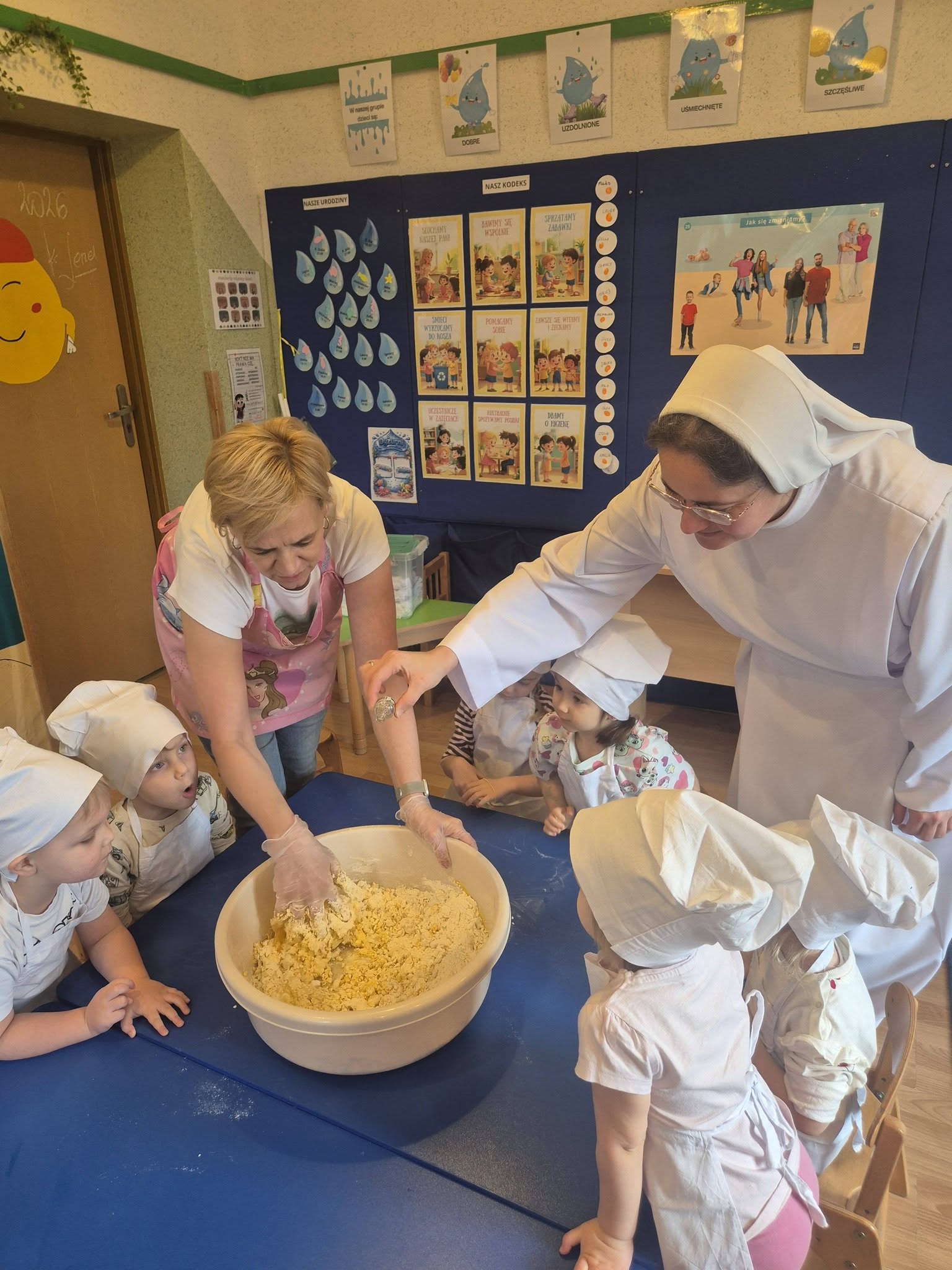 W naszym Przedszkolu Sióstr św. Elżbiety w Ożegowie wydarzyło się coś naprawdę pięknego! Nasze cudowne przedszkolaki całym sercem i z wielką radością zaangażowały się w akcję „Pączek dla Afryki”, której celem jest pomoc dzieciom z Afryki. W ten sposób łączymy się duchowo z naszymi Siostrami posługującymi w Tanzanii. Przygotowania rozpoczęły się od najmłodszych. Pod czujnym okiem Pani Joli i Pani Izy dzieci z zapałem przygotowywały i piekły pyszne pączusie serowe. Było dużo uśmiechu, mąki na rączkach i ogromnej radości ze wspólnego działania. A zapach świeżych wypieków roznosił się po całym przedszkolu — mniam! W piątek do akcji wkroczył nasz wyjątkowy „dział reklamy”. Uśmiechnięte przedszkolaki w specjalnie przygotowanych koszulkach, przy pięknie zorganizowanym stanowisku, zachęcały Rodziców i Opiekunów do włączenia się w akcję. Z dumą częstowały pączkami i opowiadały o celu zbiórki, prosząc o wsparcie finansowe dla dzieci w Afryce. To niezwykłe, jak wiele dobra może zrodzić się w małych sercach. Dzięki takim inicjatywom uczymy dzieci wrażliwości, empatii i odpowiedzialności za innych. Pokazujemy, że nawet najmłodsi mogą realnie pomagać i zmieniać świat na lepsze.