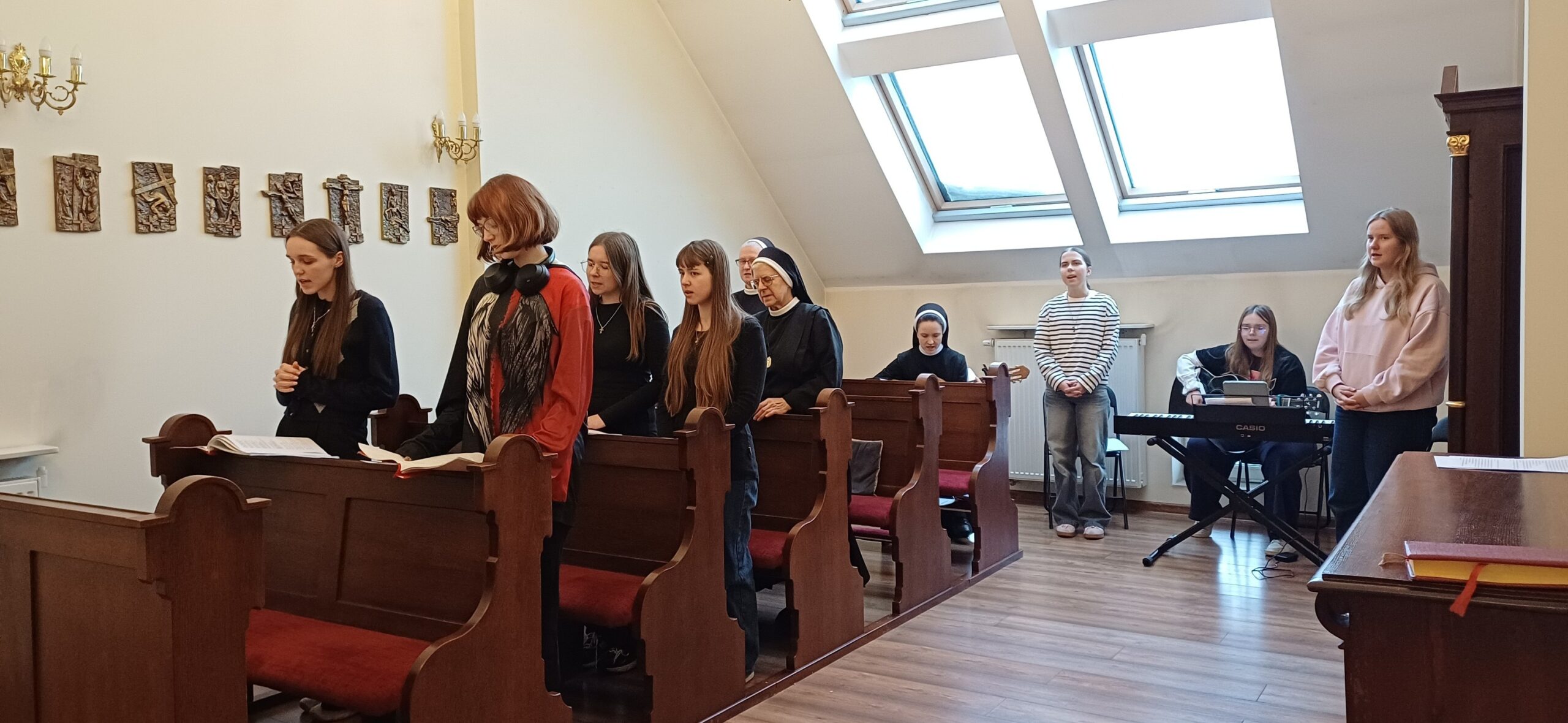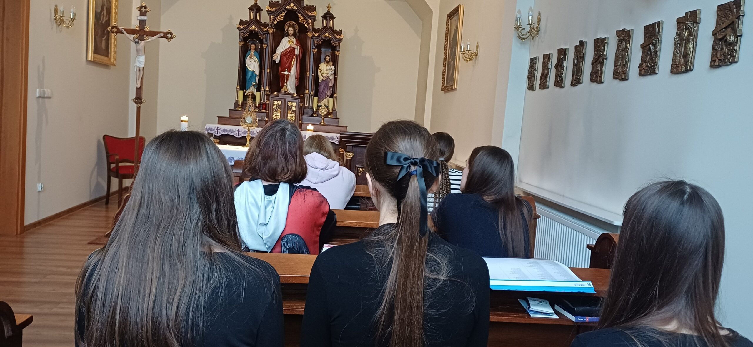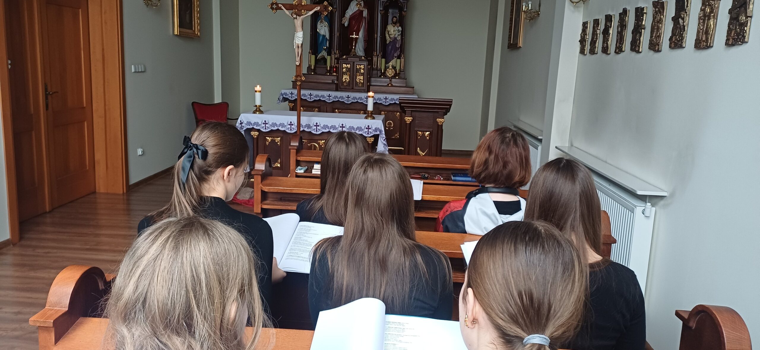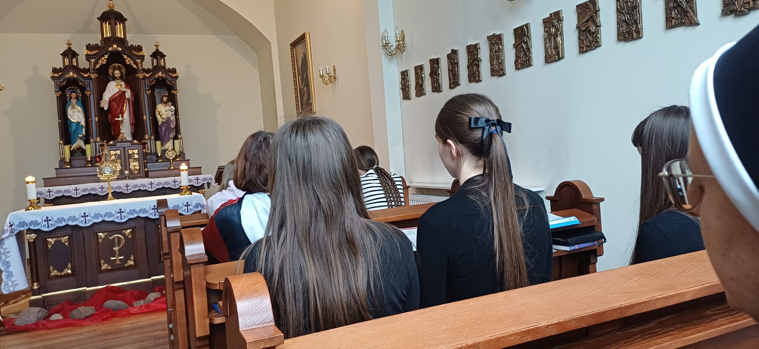 W naszym domu w Kościerzynie odbył się wielkopostny dzień skupienia dla dziewcząt. Był to czas zatrzymania, wyciszenia i spojrzenia głębiej – na siebie i na Jezusa, który w Wielkim Poście szczególnie zaprasza do bliskości.Centralnym punktem spotkania była adoracja Najświętszego Sakramentu. W ciszy każda z uczestniczek mogła trwać przed Jezusem i powierzyć Mu to, co nosi w sercu. Ten moment modlitwy pozwolił na chwilę oddechu od codzienności i doświadczenie Bożej obecności. Centralnym punktem spotkania była adoracja Najświętszego Sakramentu. W ciszy kaplicy dziewczęta trwały przed Jezusem, powierzając Mu swoje radości, trudności i intencje. Ten czas modlitewnego czuwania stał się dla wielu z nich głębokim doświadczeniem bliskości Boga. Podczas dnia skupienia nie zabrakło również rozważania Męki Pańskiej. Wspólna refleksja nad cierpieniem Chrystusa pomogła uczestniczkom lepiej zrozumieć sens Wielkiego Postu jako czasu nawrócenia, przemiany serca i wdzięczności za dar zbawienia. Siostry zaproponowały dziewczętom również pracę warsztatową – wykonanie chust z obliczem cierpiącego Chrystusa. Była to szczególna okazja do medytowania Oblicza Pana. Powstałe prace są widzialnym symbolem tego, co dokonywało się w sercach uczestniczek. Dziękujemy wszystkim uczestniczkom za obecność, otwartość serca i wspólnie przeżyty czas. Niech owoce tego dnia skupienia umacniają je w codziennym podążaniu za Chrystusem.