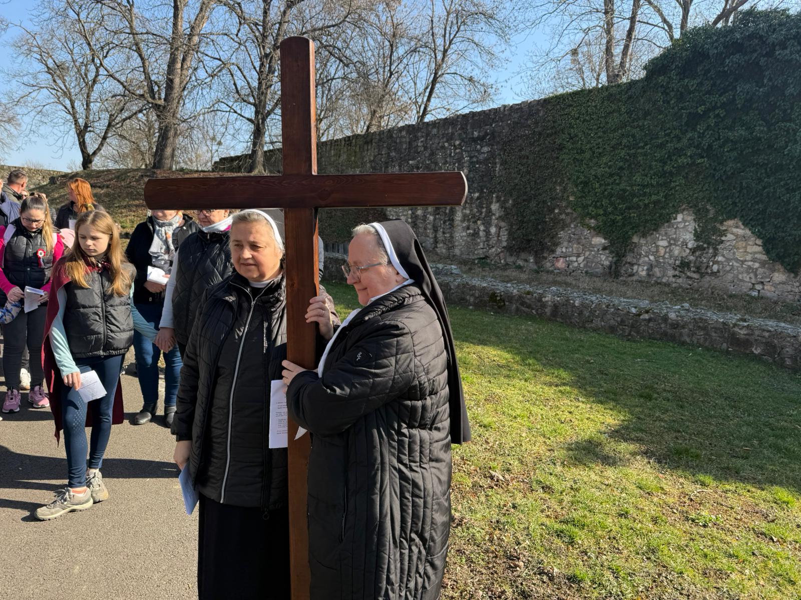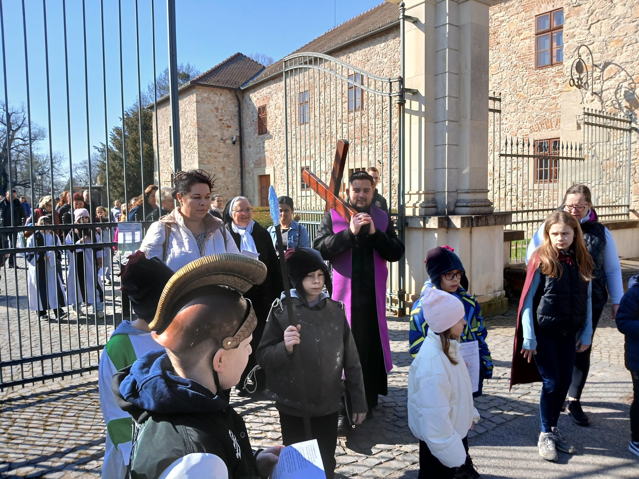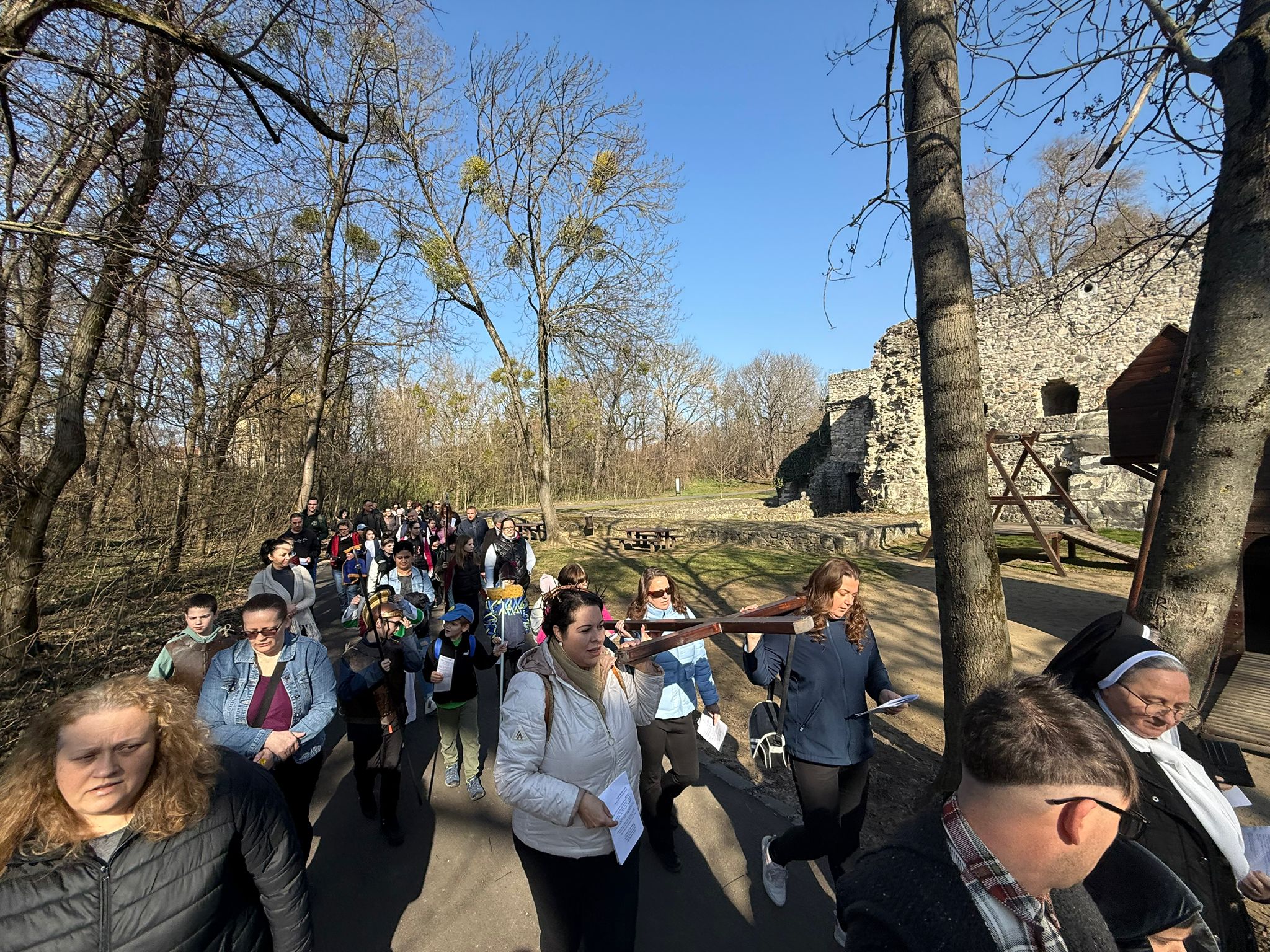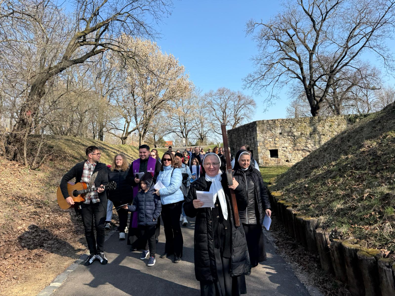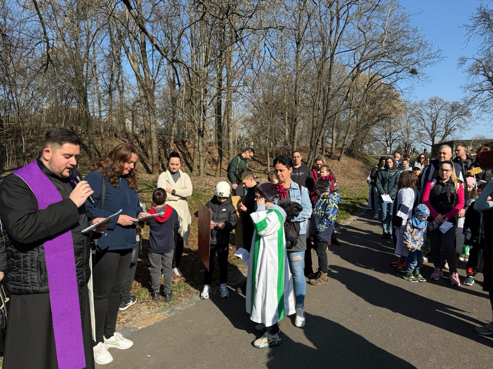Przez cały Wielki Post w Katolickiej Szkole Podstawowej im. Św. Elżbiety, przed rozpoczęciem lekcji, dzieci prowadzą dla całej szkoły I stację drogi krzyżowej. Klasa wraz z wychowawcą gromadzi się w oratorium, a przez multimedia pozostali uczniowie łączą się w klasach w modlitwie drogi krzyżowej. Uczniowie przygotowują postanowienia i pozostawiają na kamieniu. W tej modlitwie uczestniczą uczniowie i nauczyciele wszystkich wyznań. W auli znajduje się duży wielkopostny kalendarz z krótkim przesłaniem na dany dzień. W sobotę ruszyła droga krzyżowa dzieci naszej parafii przygotowujących się do I Komunii wraz z ich rodzicami, katechetkami, siostrami i ks. Wikarym. Poszczególne stacje były rozmieszczone w parku otaczającym zamek Fr. Rakoczego. Piękne było to, że także dzieci z innych szkół i parafii dołączyły do nas. Modlitwa cieszyła się wielkim zainteresowaniem ze strony spacerujących turystów.