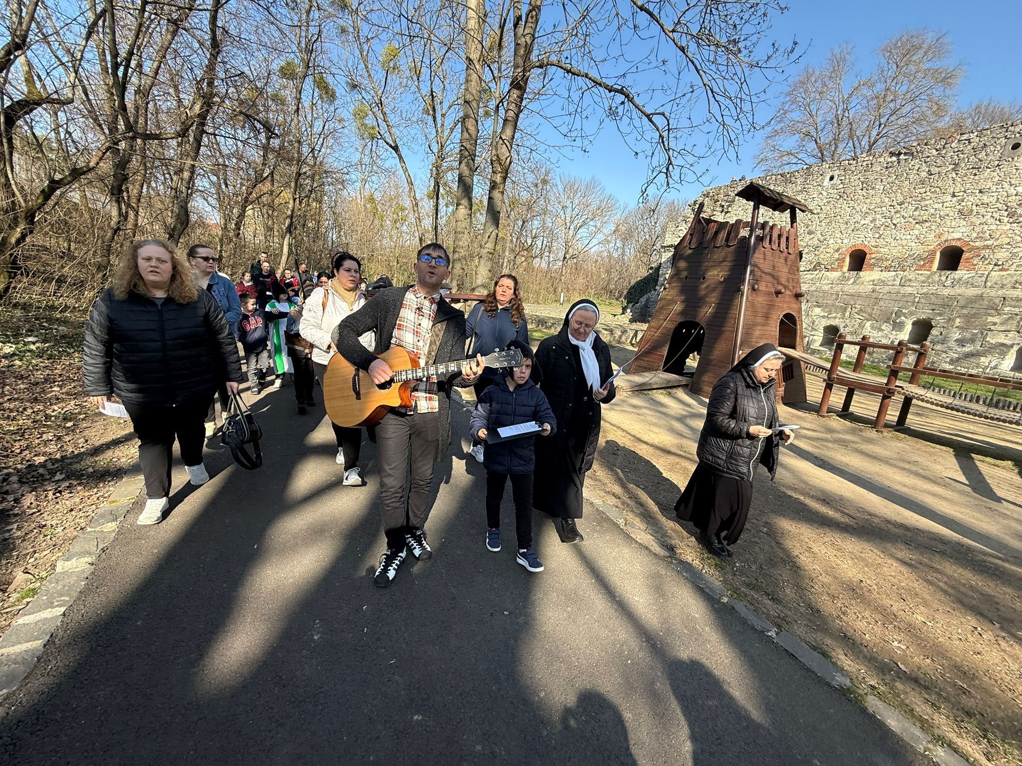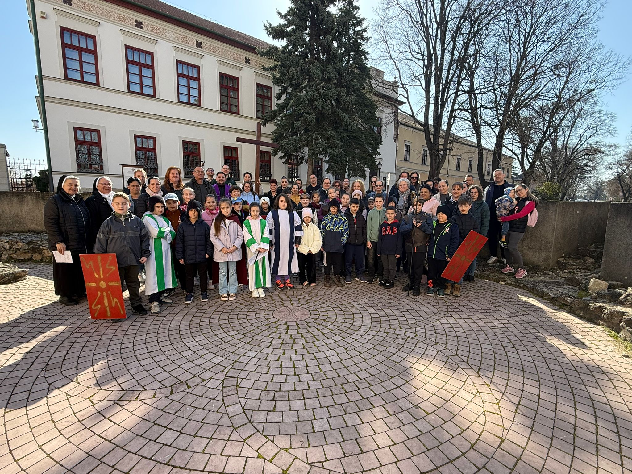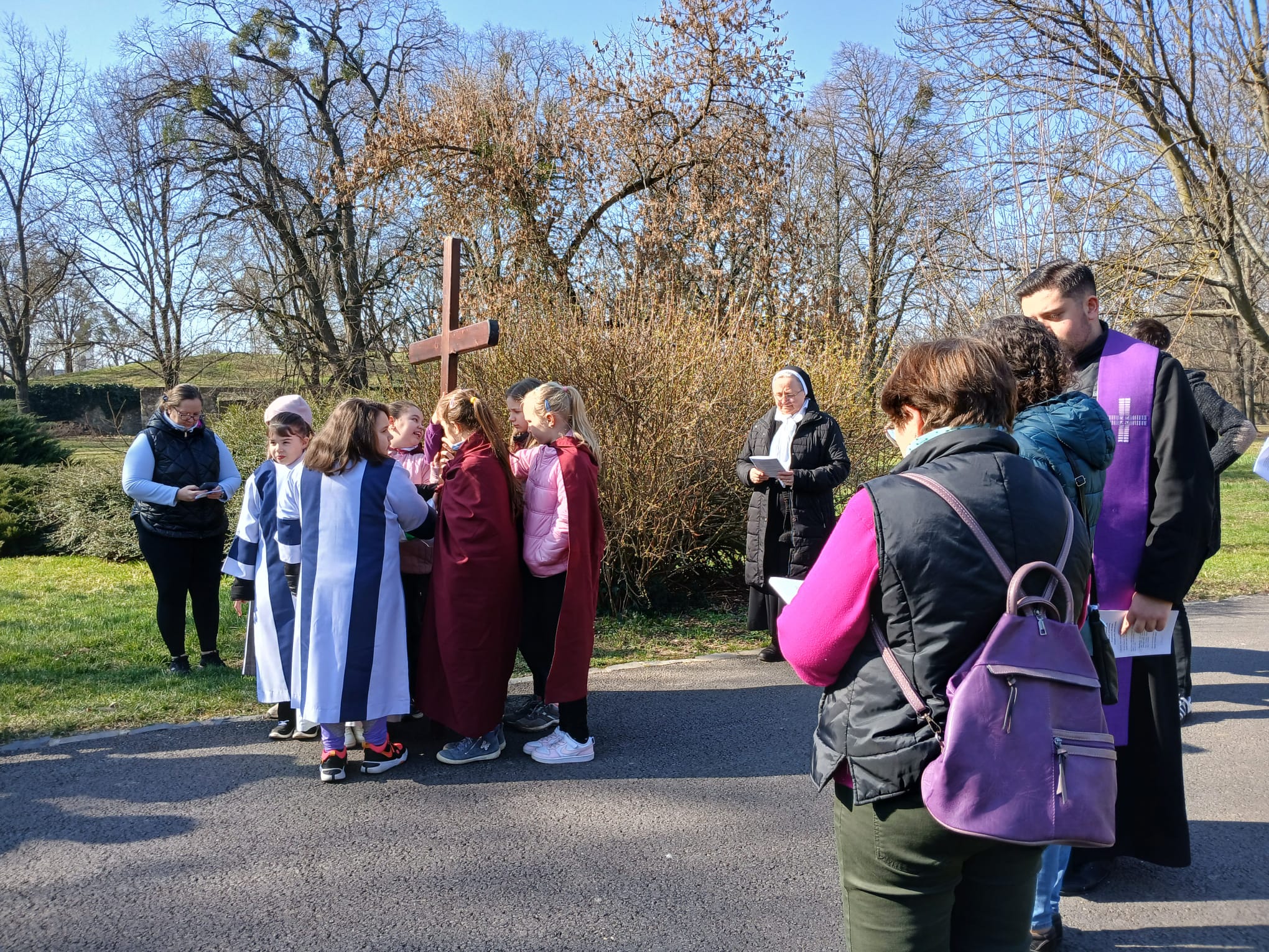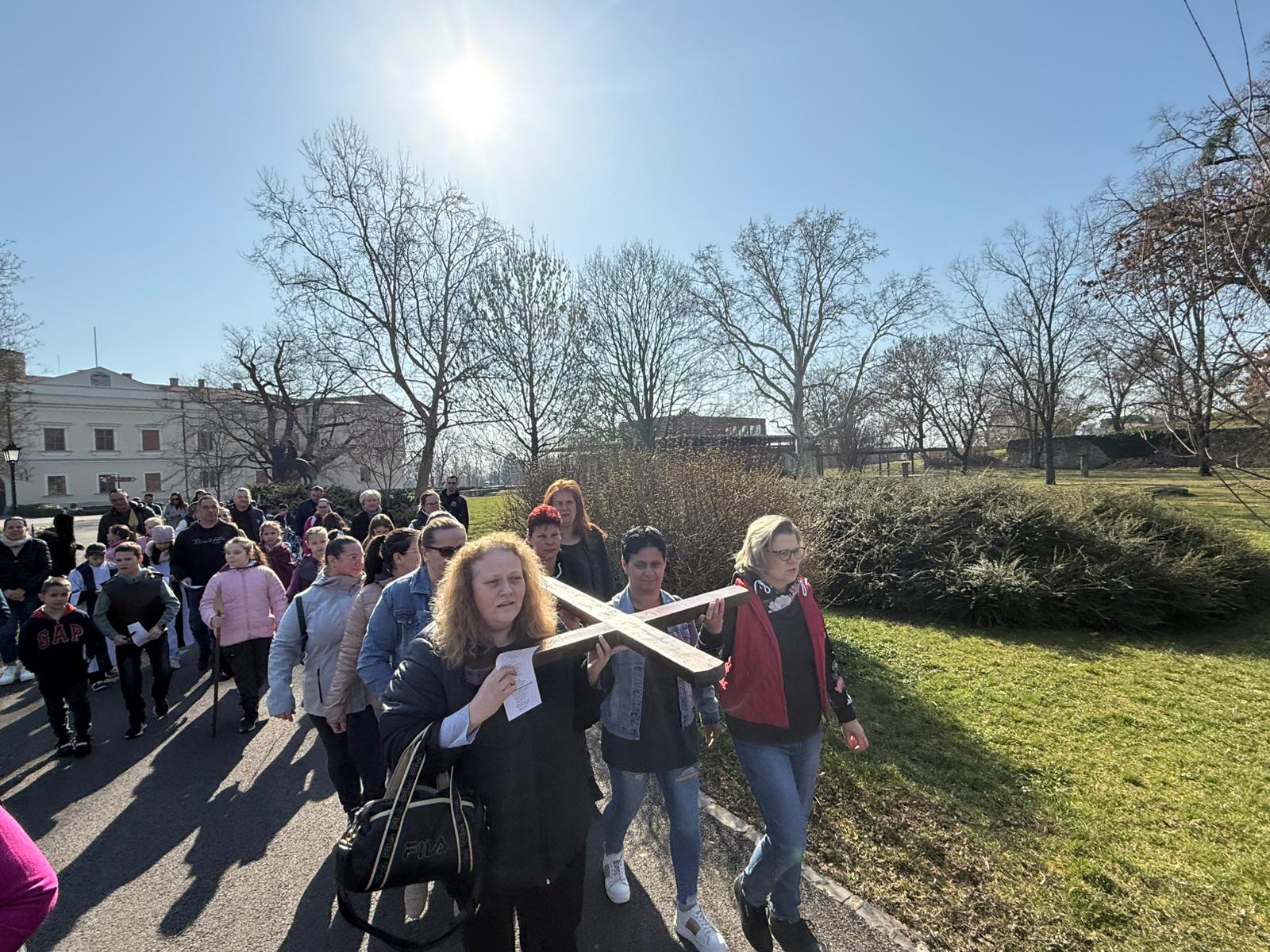 Przez cały Wielki Post w Katolickiej Szkole Podstawowej im. Św. Elżbiety, przed rozpoczęciem lekcji, dzieci prowadzą dla całej szkoły I stację drogi krzyżowej. Klasa wraz z wychowawcą gromadzi się w oratorium, a przez multimedia pozostali uczniowie łączą się w klasach w modlitwie drogi krzyżowej. Uczniowie przygotowują postanowienia i pozostawiają na kamieniu. W tej modlitwie uczestniczą uczniowie i nauczyciele wszystkich wyznań. W auli znajduje się duży wielkopostny kalendarz z krótkim przesłaniem na dany dzień. W sobotę ruszyła droga krzyżowa dzieci naszej parafii przygotowujących się do I Komunii wraz z ich rodzicami, katechetkami, siostrami i ks. Wikarym. Poszczególne stacje były rozmieszczone w parku otaczającym zamek Fr. Rakoczego. Piękne było to, że także dzieci z innych szkół i parafii dołączyły do nas. Modlitwa cieszyła się wielkim zainteresowaniem ze strony spacerujących turystów.