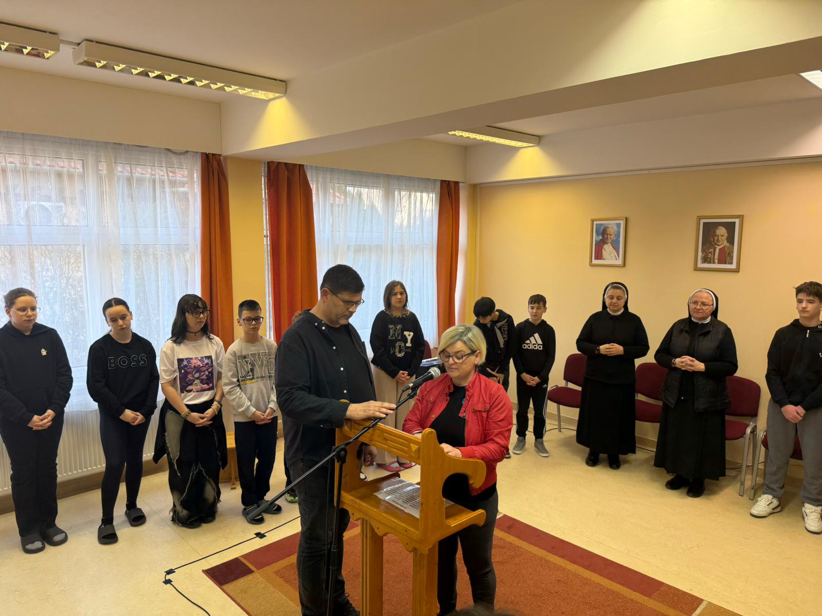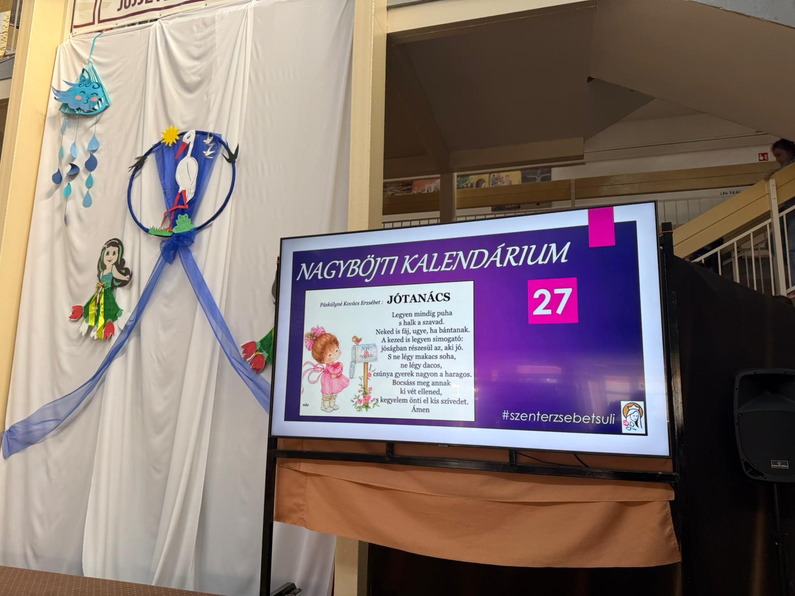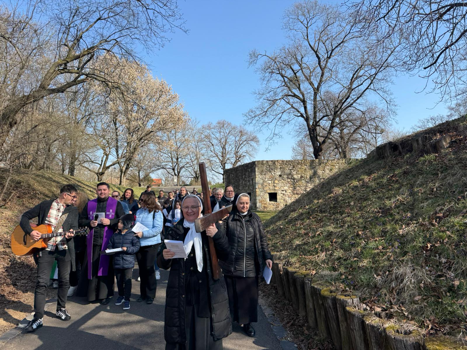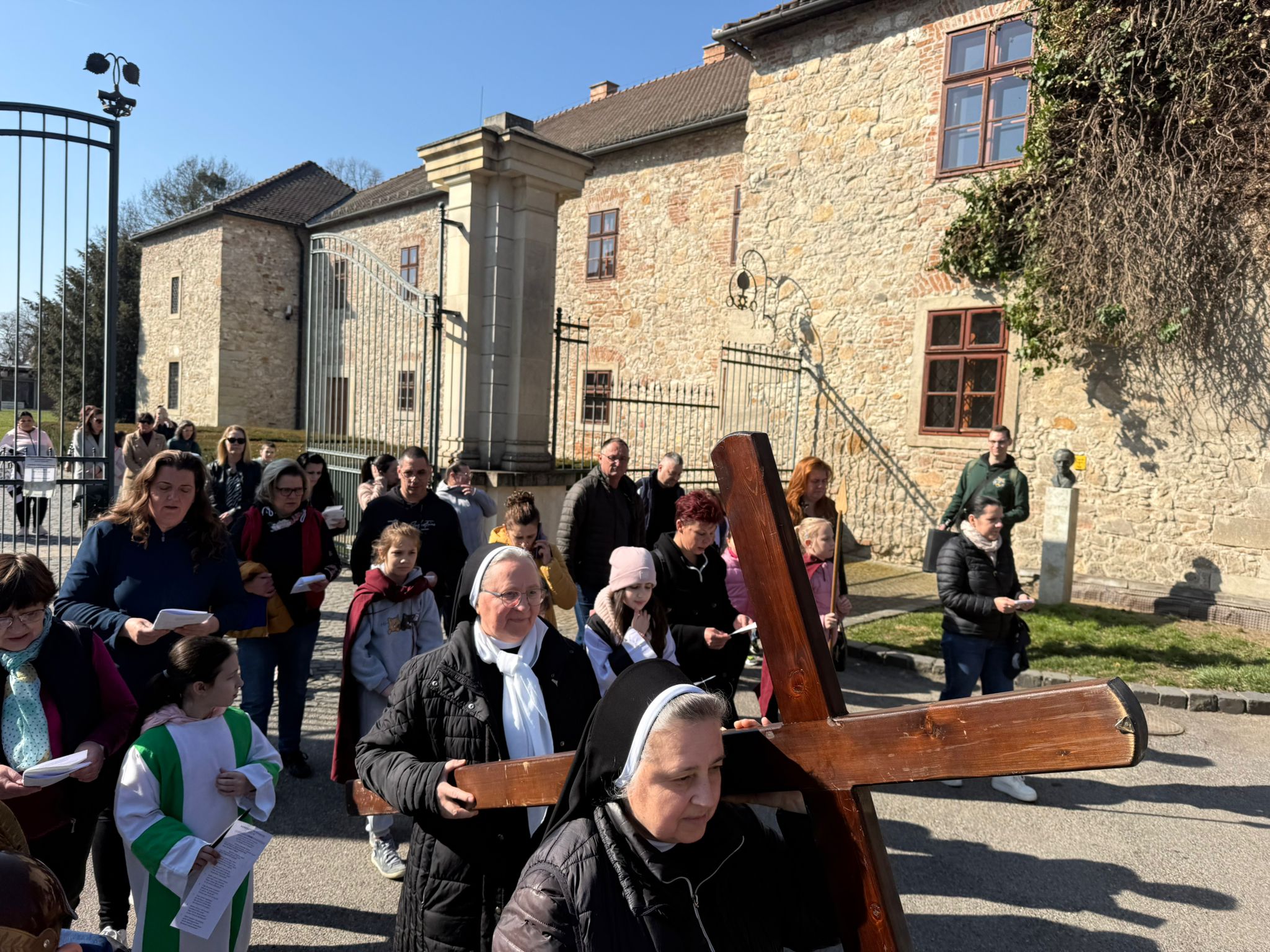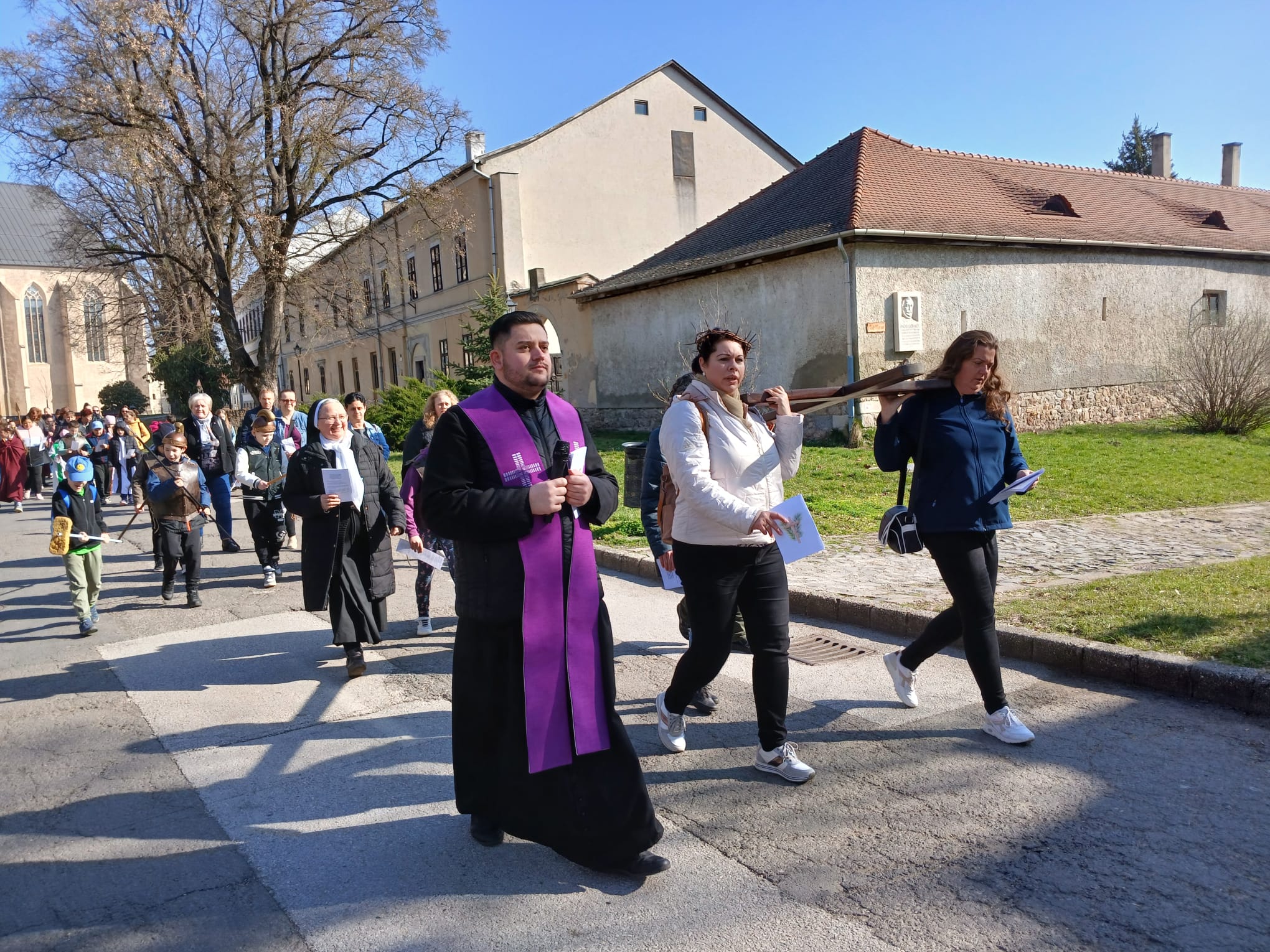 Przez cały Wielki Post w Katolickiej Szkole Podstawowej im. Św. Elżbiety, przed rozpoczęciem lekcji, dzieci prowadzą dla całej szkoły I stację drogi krzyżowej. Klasa wraz z wychowawcą gromadzi się w oratorium, a przez multimedia pozostali uczniowie łączą się w klasach w modlitwie drogi krzyżowej. Uczniowie przygotowują postanowienia i pozostawiają na kamieniu. W tej modlitwie uczestniczą uczniowie i nauczyciele wszystkich wyznań. W auli znajduje się duży wielkopostny kalendarz z krótkim przesłaniem na dany dzień. W sobotę ruszyła droga krzyżowa dzieci naszej parafii przygotowujących się do I Komunii wraz z ich rodzicami, katechetkami, siostrami i ks. Wikarym. Poszczególne stacje były rozmieszczone w parku otaczającym zamek Fr. Rakoczego. Piękne było to, że także dzieci z innych szkół i parafii dołączyły do nas. Modlitwa cieszyła się wielkim zainteresowaniem ze strony spacerujących turystów.
