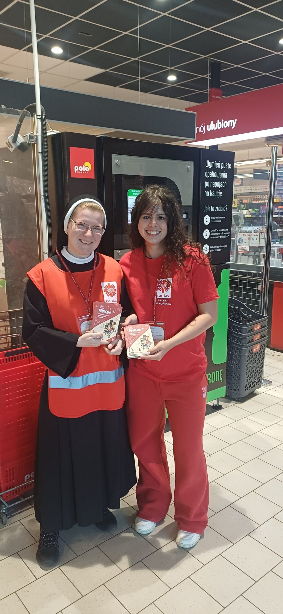 W miniony weekend odbyła się kolejna edycja ogólnopolskiej zbiórki żywności Caritas „Tak. Pomagam!”. Akcja, jak co roku, spotkała się z ogromnym odzewem i zaangażowaniem lokalnej społeczności. Dzięki ofiarności darczyńców oraz pracy wolontariuszy udało się zebrać aż 1500 kg żywności. Zebrane produkty zostaną przekazane osobom potrzebującym w okresie przedświątecznym, stanowiąc dla wielu rodzin realne wsparcie i znak solidarności. W organizację zbiórki aktywnie włączyło się ponad 140 wolontariuszy, którzy z pełnym zaangażowaniem prowadzili działania w sklepach, zachęcając klientów do udziału w akcji. Nieocenioną pomoc okazali również pracownicy sklepów, którzy wsparli organizację zbiórki na miejscu. Składamy serdeczne podziękowania wszystkim, którzy przyczynili się do sukcesu tej inicjatywy – wolontariuszom, darczyńcom oraz partnerom akcji. Wasza otwartość i gotowość do pomocy pokazują, jak wielką siłę ma wspólne działanie na rzecz drugiego człowieka.