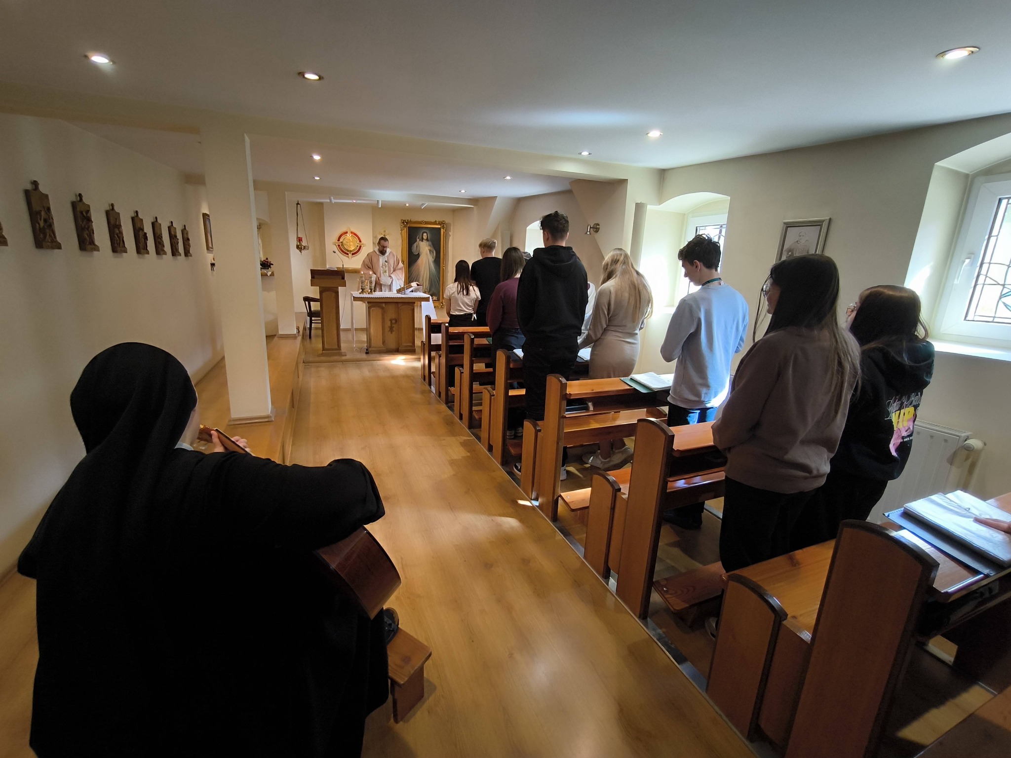 W ostatnim czasie Dom Macierzysty w Nysie stał się przestrzenią dla dobrych spotkań – miejscem, gdzie młodzi zatrzymują się na chwilę, by wśród codzienności odnaleźć to, co głębsze. Jednym z nich były dni skupienia dla młodzieży, poświęcone tematowi „przypadków”. Uczestnicy przyglądali się wydarzeniom, które wydają się zwyczajne, a jednak potrafią prowadzić do ważnych odkryć. W programie znalazły się film, warsztaty i rozmowy, które naturalnie przeplatały się z ciszą i modlitwą. Szczególnym umocnieniem były konferencje o. Savio i o. Marcina, a także adoracja Najświętszego Sakramentu i Eucharystia. W tej atmosferze łatwiej było dostrzec, że to, co pozornie przypadkowe, może mieć głębszy sens i stać się zaproszeniem do podjęcia konkretnych decyzji. Drugim wydarzeniem było spotkanie harcerek z Głuchołaz z s. Pią, poświęcone rozeznawaniu powołania. Siostra, dzieląc się własnym doświadczeniem, mówiła o powołaniu jako o zaproszeniu Boga do miłości – takiej, która może realizować się na różne sposoby. Wskazała także konkretne drogowskazy pomocne w rozeznawaniu drogi życia: modlitwę, ciszę, rekolekcje, adorację, sakramenty oraz towarzyszenie osób duchownych i bliskich. Spotkanie było przestrzenią szczerej rozmowy i uważnego słuchania. Nie zabrakło pytań, także tych trudnych, dotyczących pozostawienia dotychczasowego życia czy przeżywania macierzyństwa w życiu zakonnym. Atmosfera otwartości i zaangażowania sprzyjała dzieleniu się doświadczeniem i poszukiwaniu odpowiedzi.