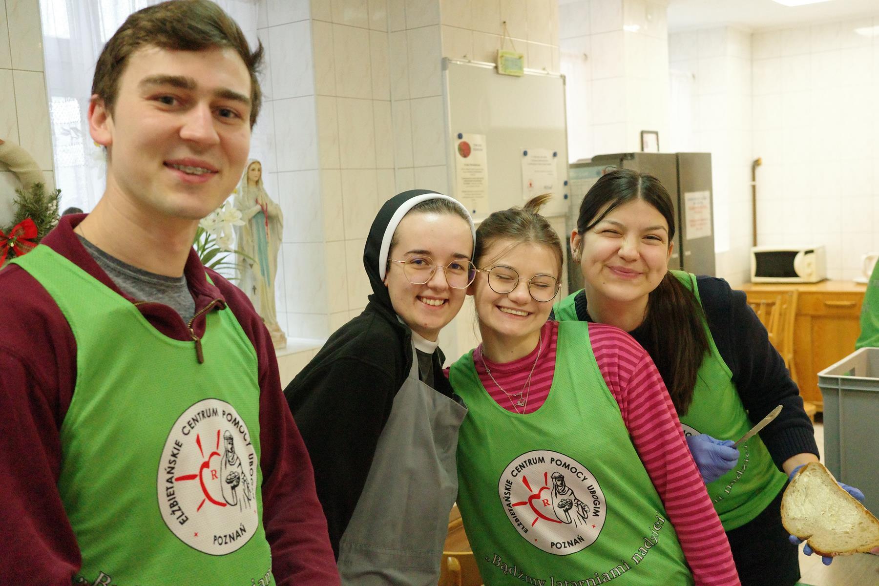 Elżbietańskie Centrum Pomocy Ubogim przy ul. Łąkowej w Poznaniu to miejsce, w którym codzienność nabiera bardzo konkretnego wymiaru miłosierdzia, wyrażającego się w prostych gestach: talerzu gorącej zupy, w rozmowie i obecności. Każdego dnia przygotowywane jest tu około 800 litrów zupy dla osób potrzebujących liczba, która robi wrażenie, ale jeszcze bardziej porusza to, co się za nią kryje: setki historii ludzkiego życia, często naznaczonych samotnością, ubóstwem i kryzysem. W okresie Wielkiego Postu to miejsce szczególnie przypomina o istocie chrześcijańskiego powołania tj: modlitwa, post i jałmużna, które znajdują tutaj swoje bardzo konkretne odbicie. Jałmużna staje się realną pomocą, ciepłym posiłkiem, wsparciem psychologicznym, chwilą wytchnienia. Nasz post natomiast to wyjście z obojętności, a modlitwa — otwarcie serca na potrzebującego człowieka. Centrum Pomocy Ubogim to więcej niż kuchnia. Działa tu także Kawiarenka św. Rodziny, która jest przestrzenią spotkania. Tutaj można nie tylko napić się herbaty czy kawy, ale przede wszystkim poczuć się zauważonym i przyjętym. To miejsce, w którym odbudowuje się relacje i przywraca godność, tak często odbieraną przez trudne doświadczenia życiowe. Ważnym elementem naszej działalności jest również pomoc psychologiczna, która dla wielu osób stanowi pierwszy krok do wyjścia z kryzysu i odzyskania nadziei. Serce tego miejsca bije również dzięki pomocy wolontariuszy. To oni każdego dnia podejmują trud pracy bez wynagrodzenia, kierowani nie obowiązkiem, lecz potrzebą serca. Ich obecność to świadectwo, że bezinteresowna dobroć wciąż ma ogromną siłę. W świecie, który często mierzy wartość człowieka jego efektywnością czy statusem, oni przypominają, że najważniejsza jest miłość wyrażona w działaniu.