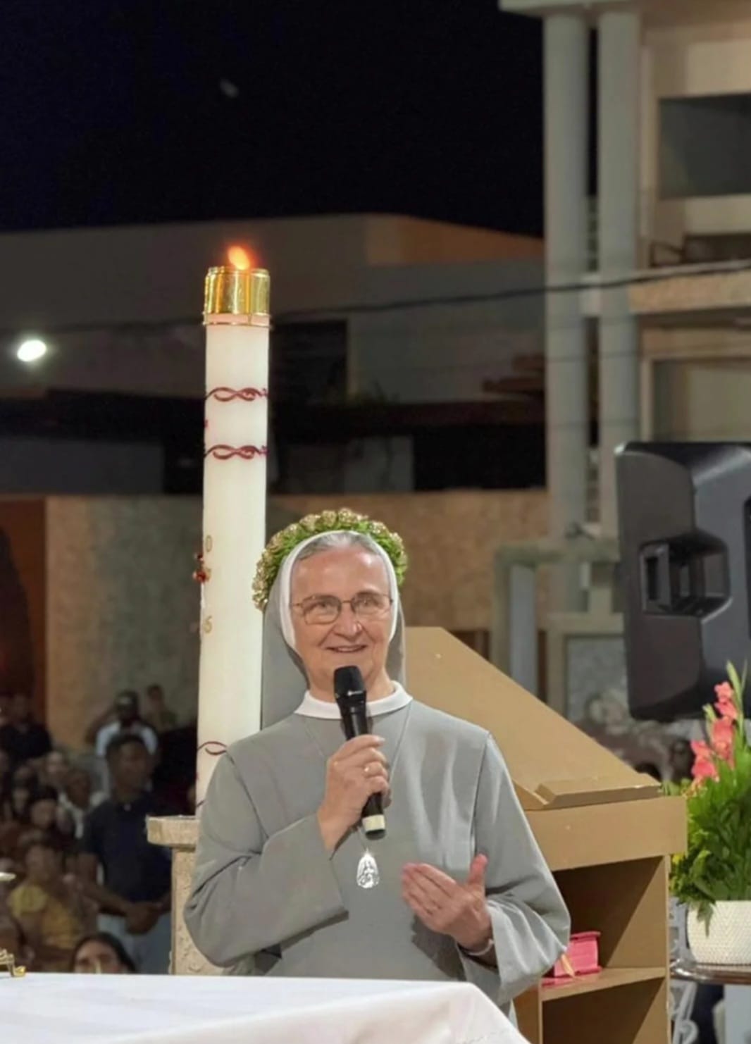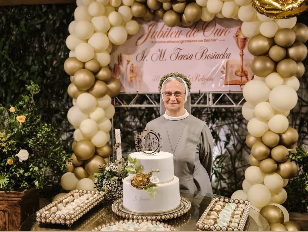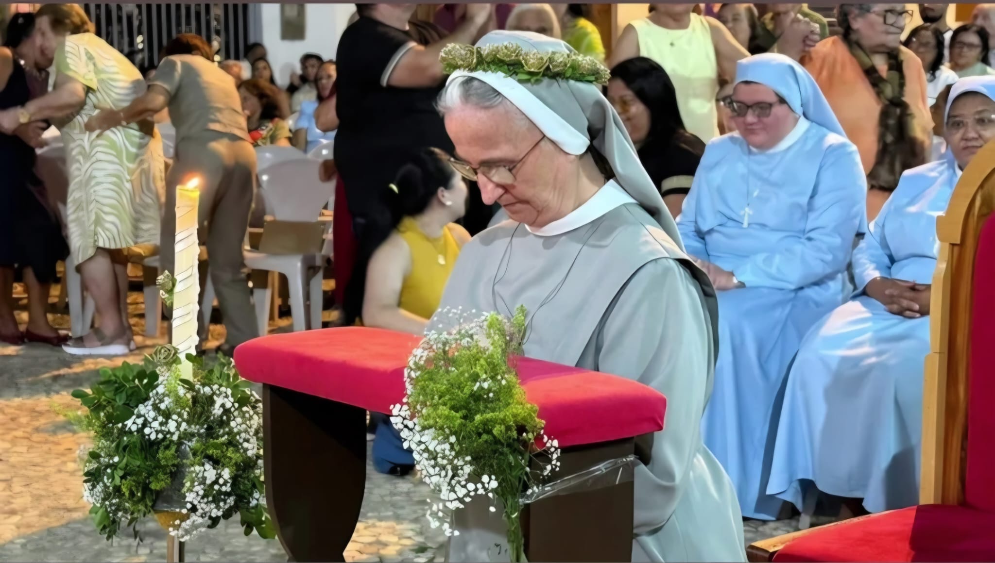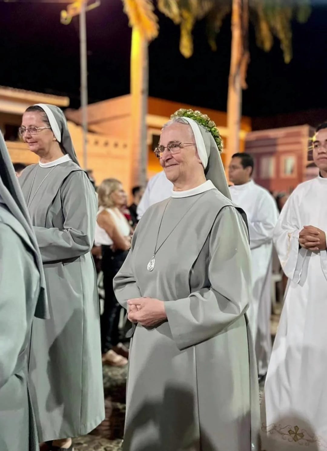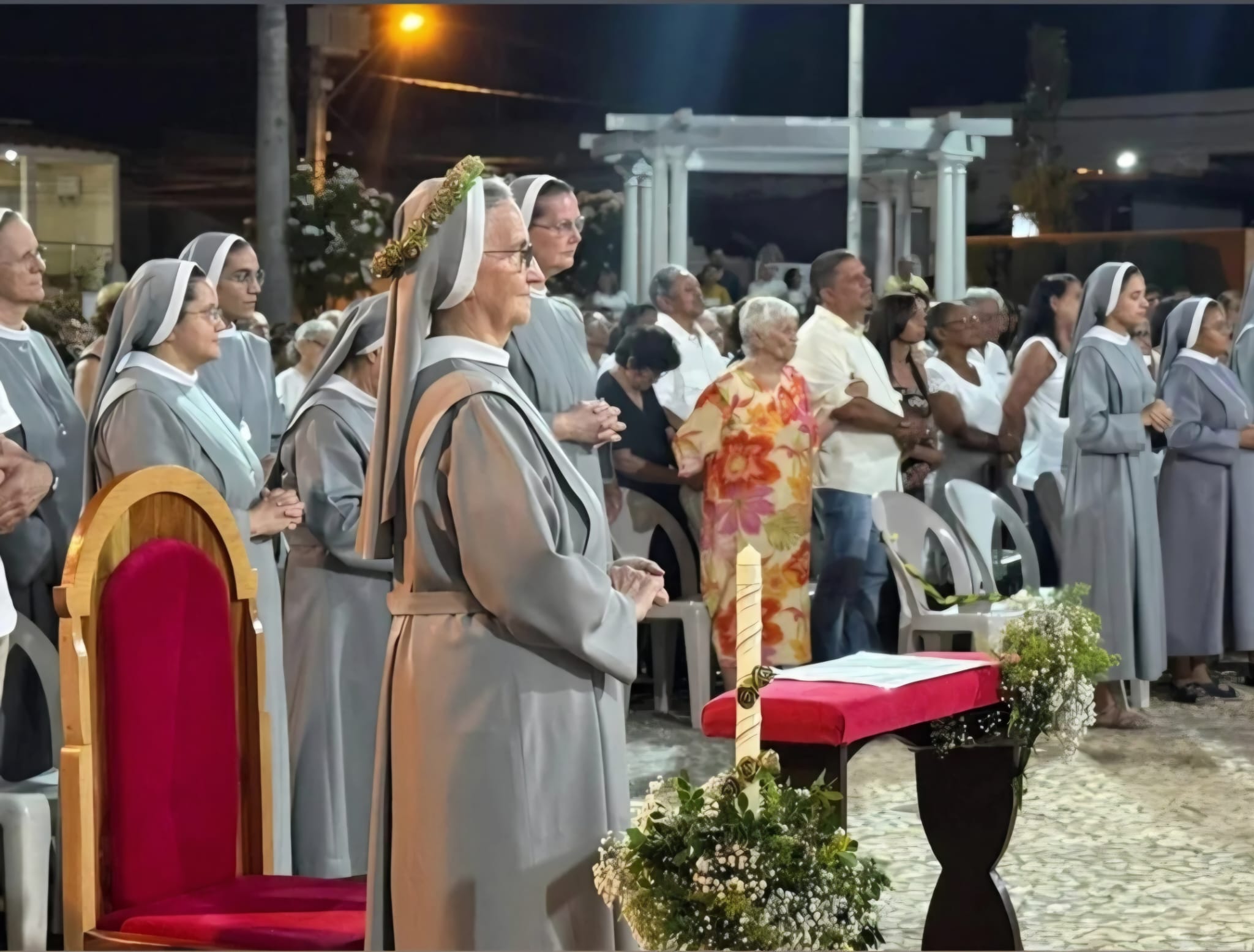 W niedzielę, 26 kwietnia br., w Katedrze Świętego Antoniego w Salgueiro rozbrzmiało dziękczynienie za pięćdziesiąt lat wiernej służby Bogu i ludziom. Złoty Jubileusz życia zakonnego Siostry M. Teresy Bosiackiej stał się dla zgromadzonych nie tylko okazją do świętowania, lecz także do głębokiej refleksji nad pięknem powołania i wiernością, która dojrzewa w ciszy codziennych ofiar. Uroczystej Eucharystii przewodniczył Ks. Biskup Henrique Lopes OFM Cap, który w homilii podkreślił, że życie zakonne jest drogą miłości wymagającej, lecz pełnej światła – drogą, na której każdy dzień staje się odpowiedzią na Boże wezwanie. Liturgia miała szczególnie podniosły charakter, a jej sercem było dziękczynienie za pół wieku oddania, modlitwy i służby Siostry Jubilatki.W tej wyjątkowej chwili Siostrze Marii Teresie towarzyszyła najbliższa Rodzina, Siostry ze Zgromadzenia na czele z Siostrą Prowincjalną M. Alicją Sikorą, a także Przyjaciele, Współpracownicy oraz licznie zgromadzeni Parafianie. Wspólnota wiernych, zjednoczona w modlitwie, dała wyraz wdzięczności za obecność i świadectwo życia Jubilatki, które przez lata stawało się cichym, lecz wyraźnym znakiem Bożej obecności. Złoty Jubileusz jest szczególnym momentem spojrzenia wstecz – na drogę przeżytą w wierności – ale i spojrzenia naprzód, ku temu, co jeszcze Bóg przygotował. W życiu Siostry Marii Teresy wyraźnie brzmią słowa Pisma Świętego: „Wystarczy ci mojej łaski. Moc bowiem w słabości się doskonali” (2 Kor 12,9). To właśnie łaska Boża prowadziła Ją przez wszystkie lata powołania, umacniając w chwilach prób i rozjaśniając codzienność.